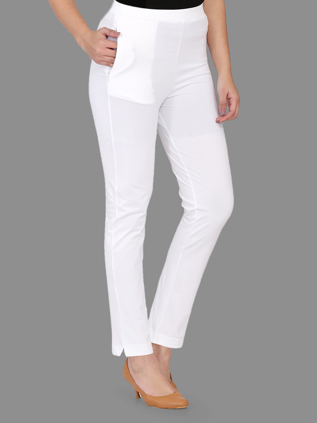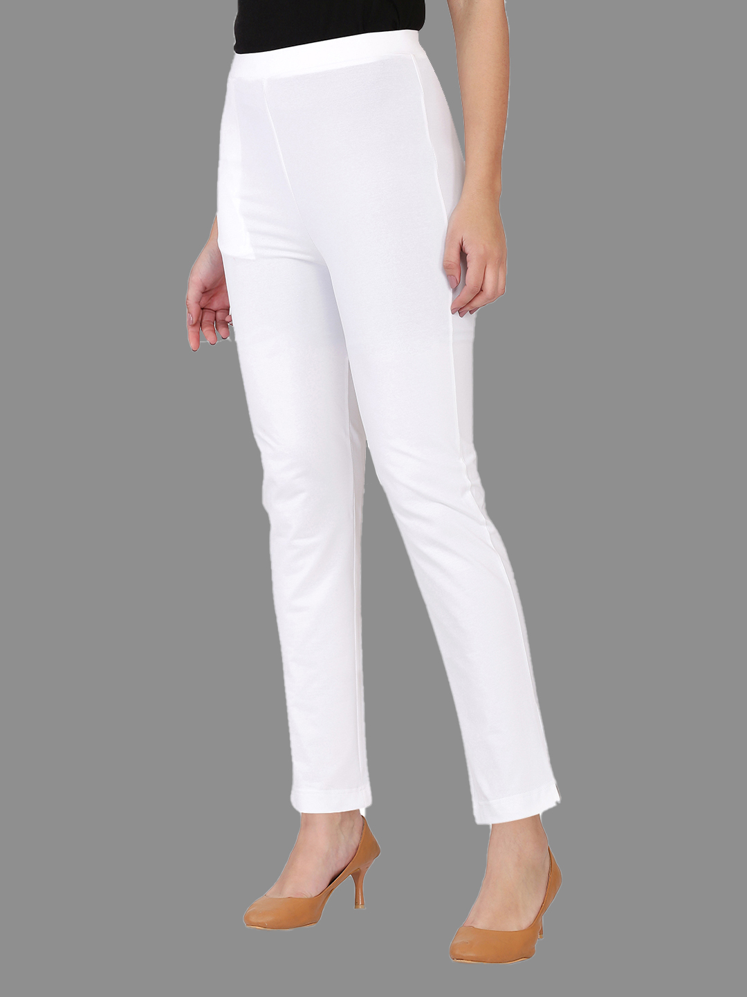 Fabric- Cotton spandex Length- Ankle length Fit- Regular fit, mid rise Material- Soft, Stretchable Fabric Waistband- Comfortable Elastic Waistband
