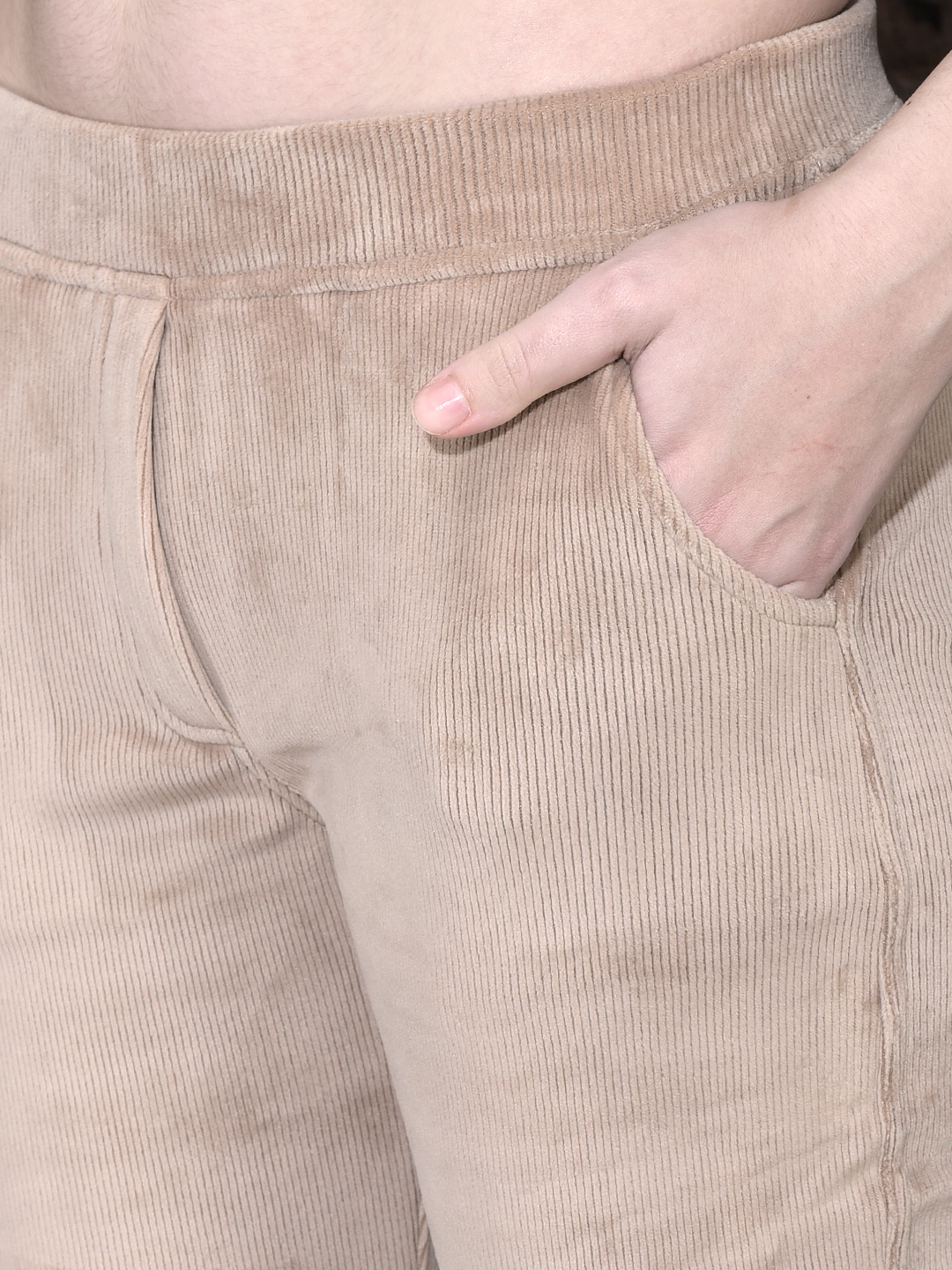 Embrace the season in style with the CORD-150 Trousers. These comfortable and sophisticated pants are crafted from a soft, plush Warm Velvet Corduroy fabric, offering superior warmth and a distinctly rich texture. The premium blend of Poly Viscose Spandex ensures a comfortable stretch and a flattering fit. Designed with a clean, straight-leg or slight bootcut fit and a versatile Full Length, these pants are an essential addition to your winter wardrobe. Fabric: Ultra-soft Warm Velvet Corduroy Composition: Durable and stretchy Poly Viscose Spandex Fit: Versatile straight-leg or slight bootcut shape with a Full Length Waistband: Comfortable, wide elasticated waistband Colors- Wine, Black, Rust, Olive, Beige