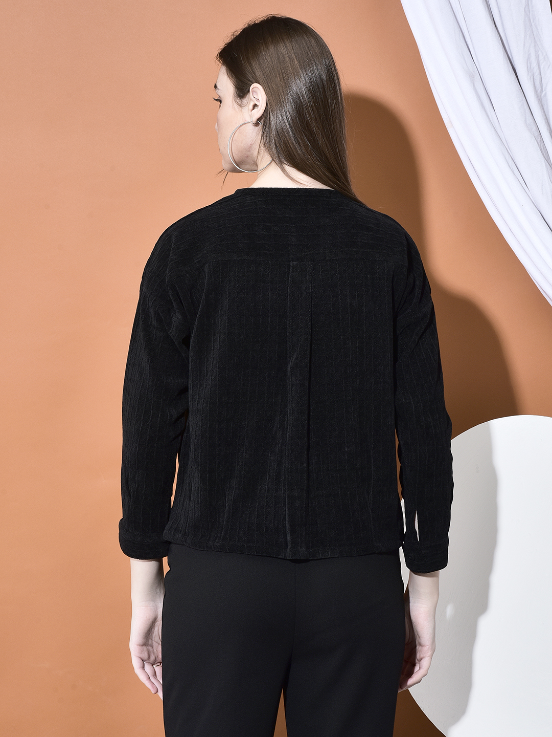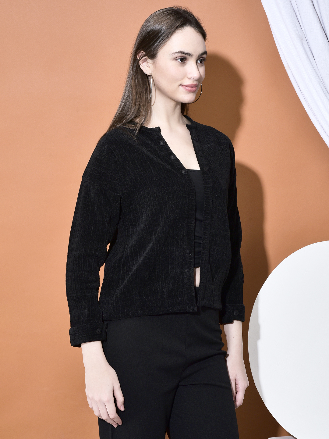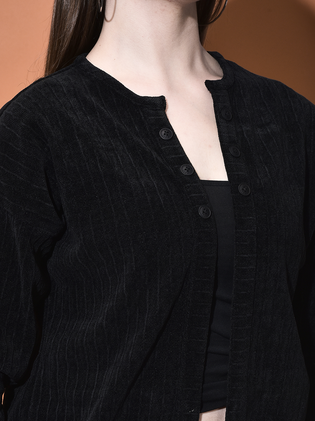 Homepage Winter Wear Textured Button-Front Shacket Black