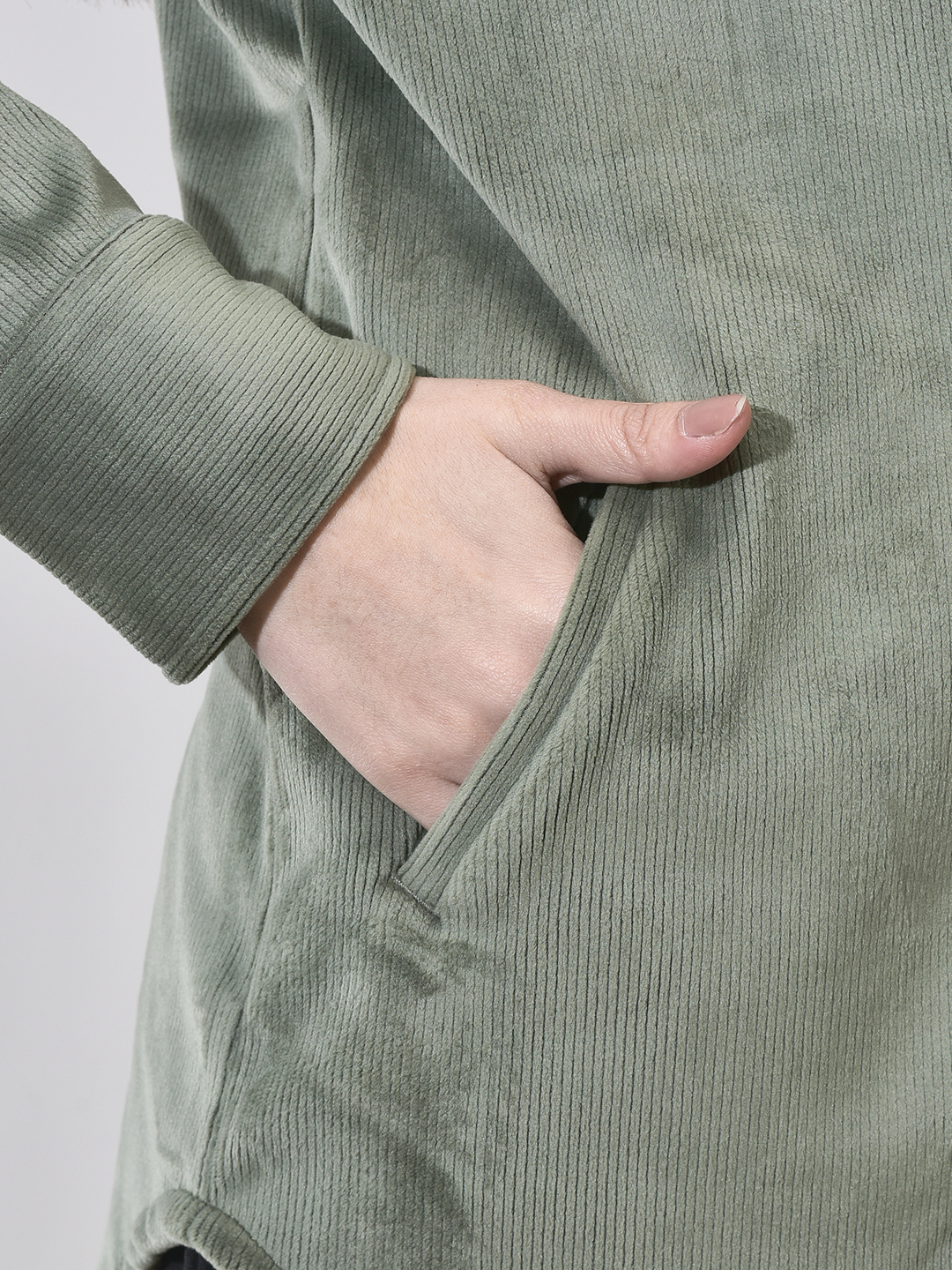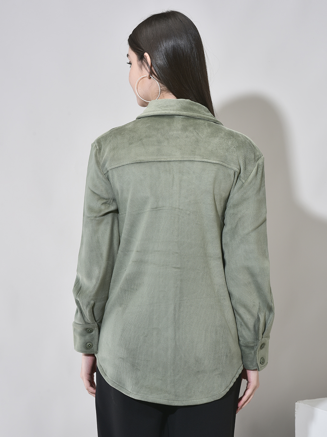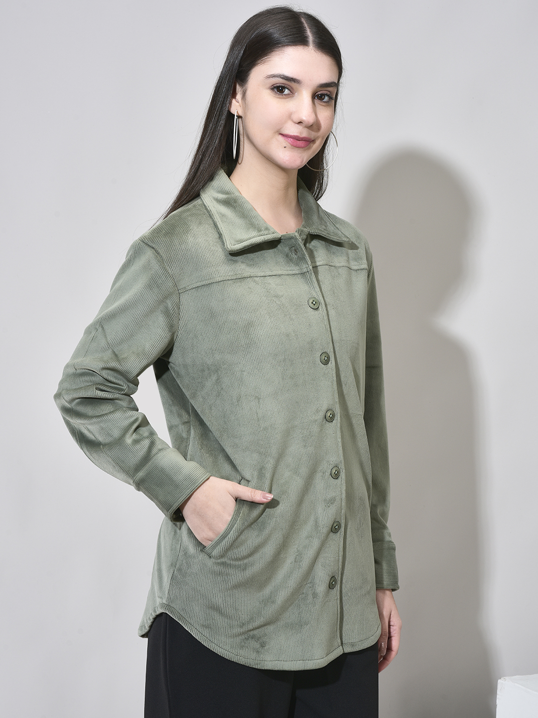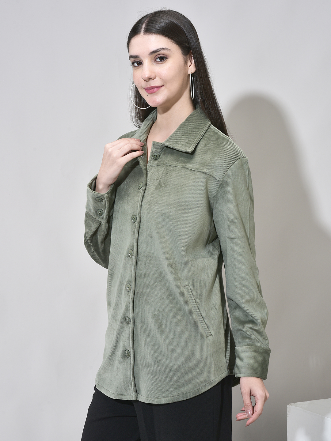 Homepage Winter Wear Velvet Corduroy Pocket Shacket Green