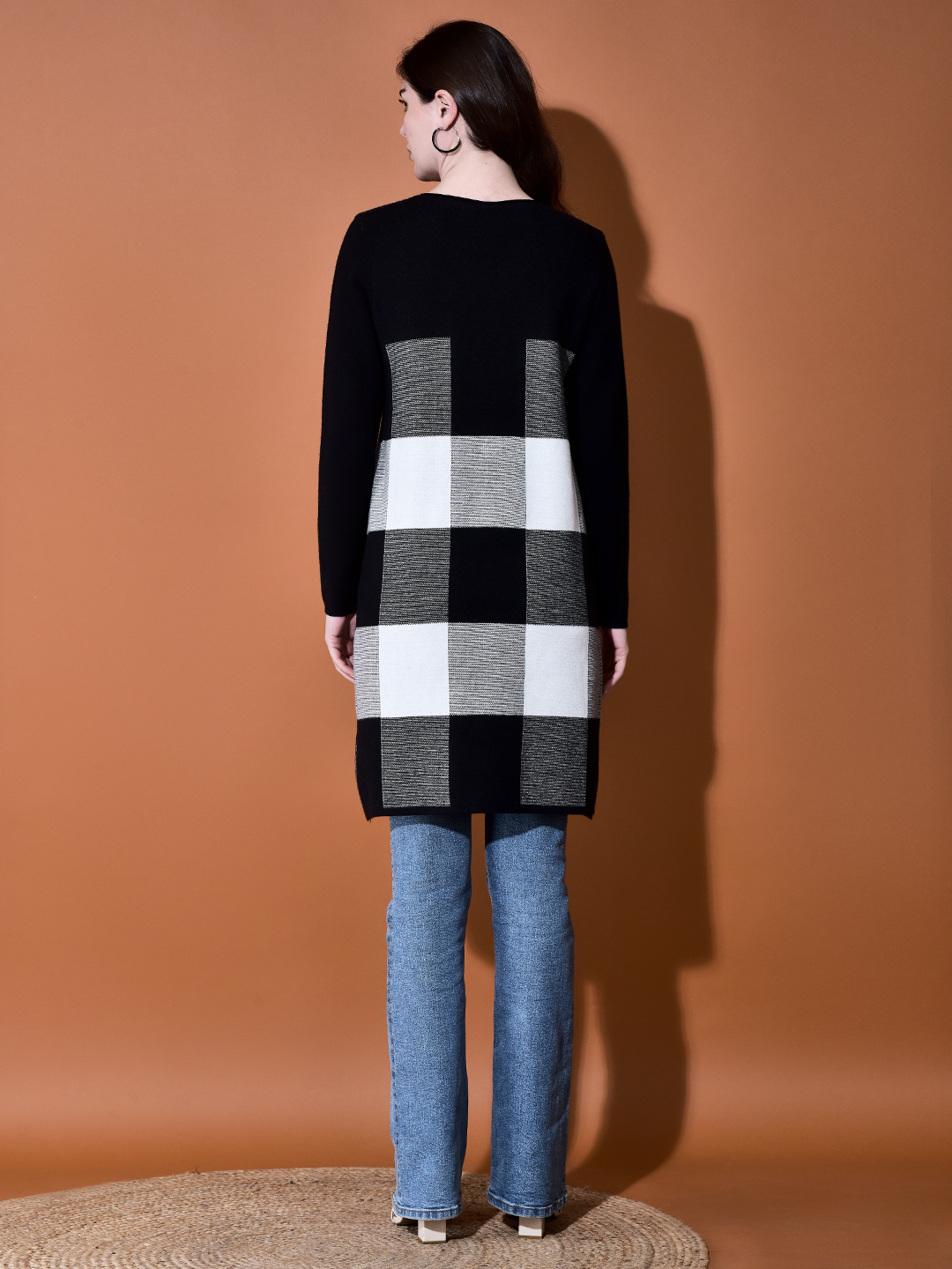 Make a bold statement this season with our Checkmate Woolen Long Tunic. Featuring a striking block pattern, this tunic is designed to keep you warm and effortlessly stylish throughout the colder months.