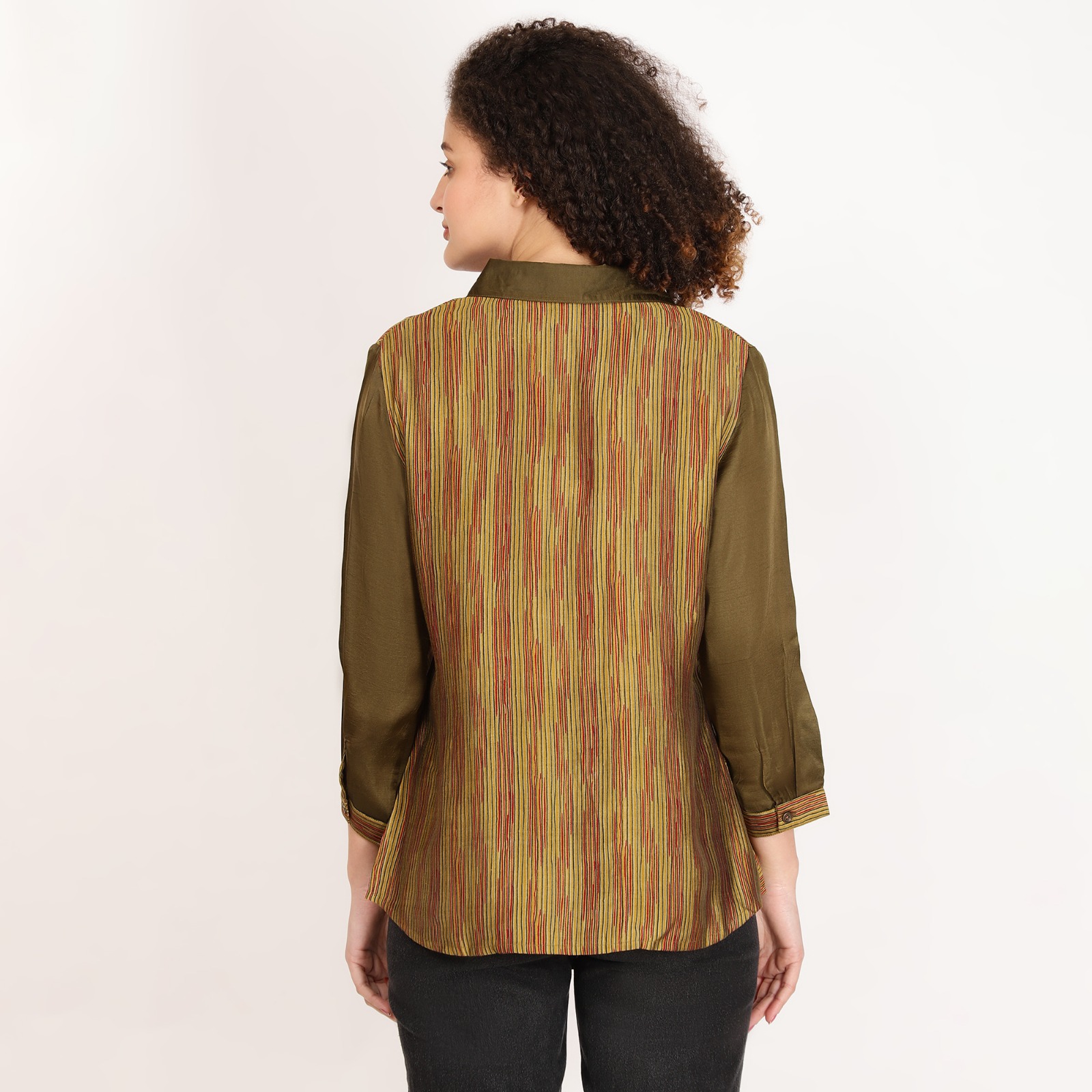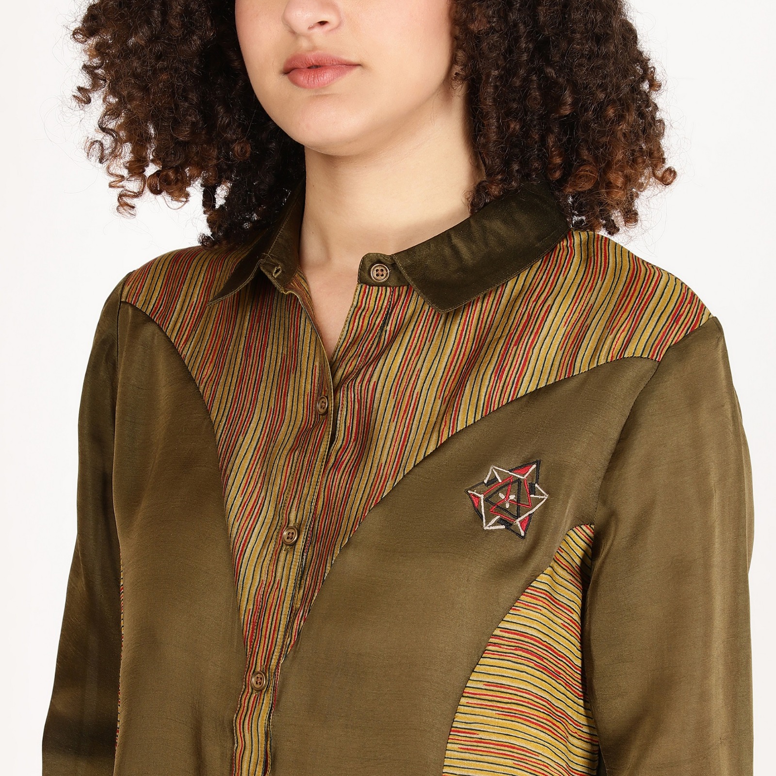 fabric- :: poly viscose Length- :: regular Detailing- :: Embellished swarovski work on collar and one side of placket.