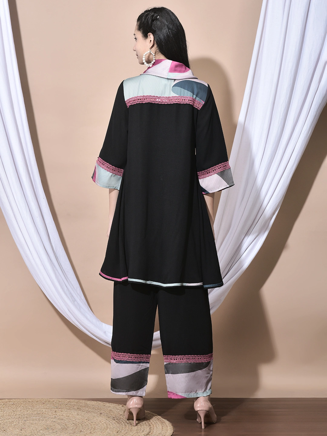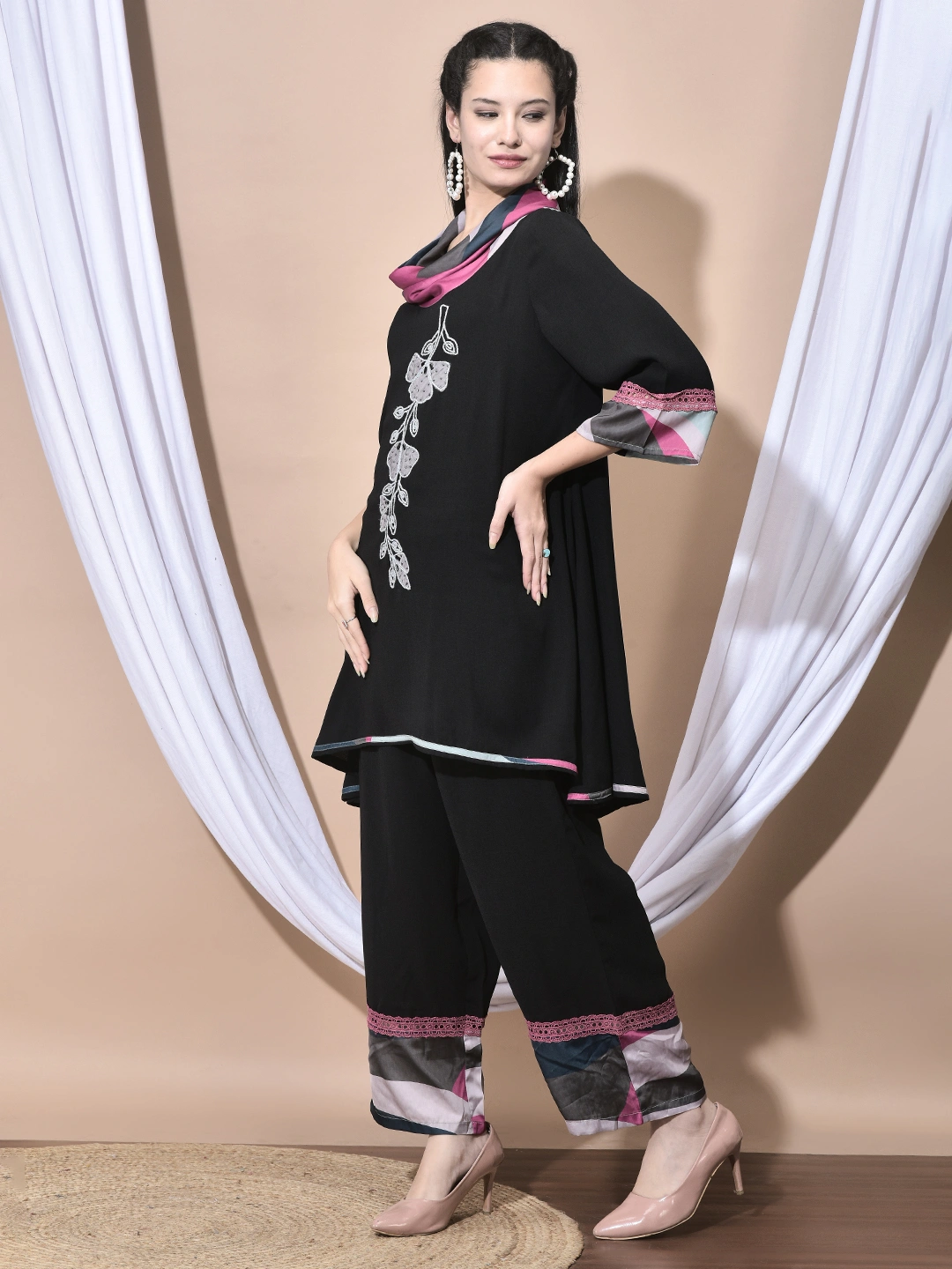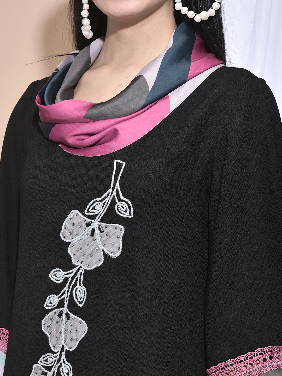 FABRIC :: Poly viscose\r\n\r\nDETAILINGS :: Cowl neck with floral handwork