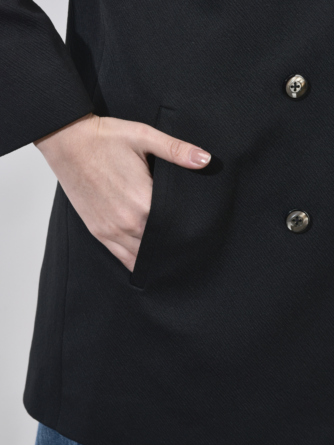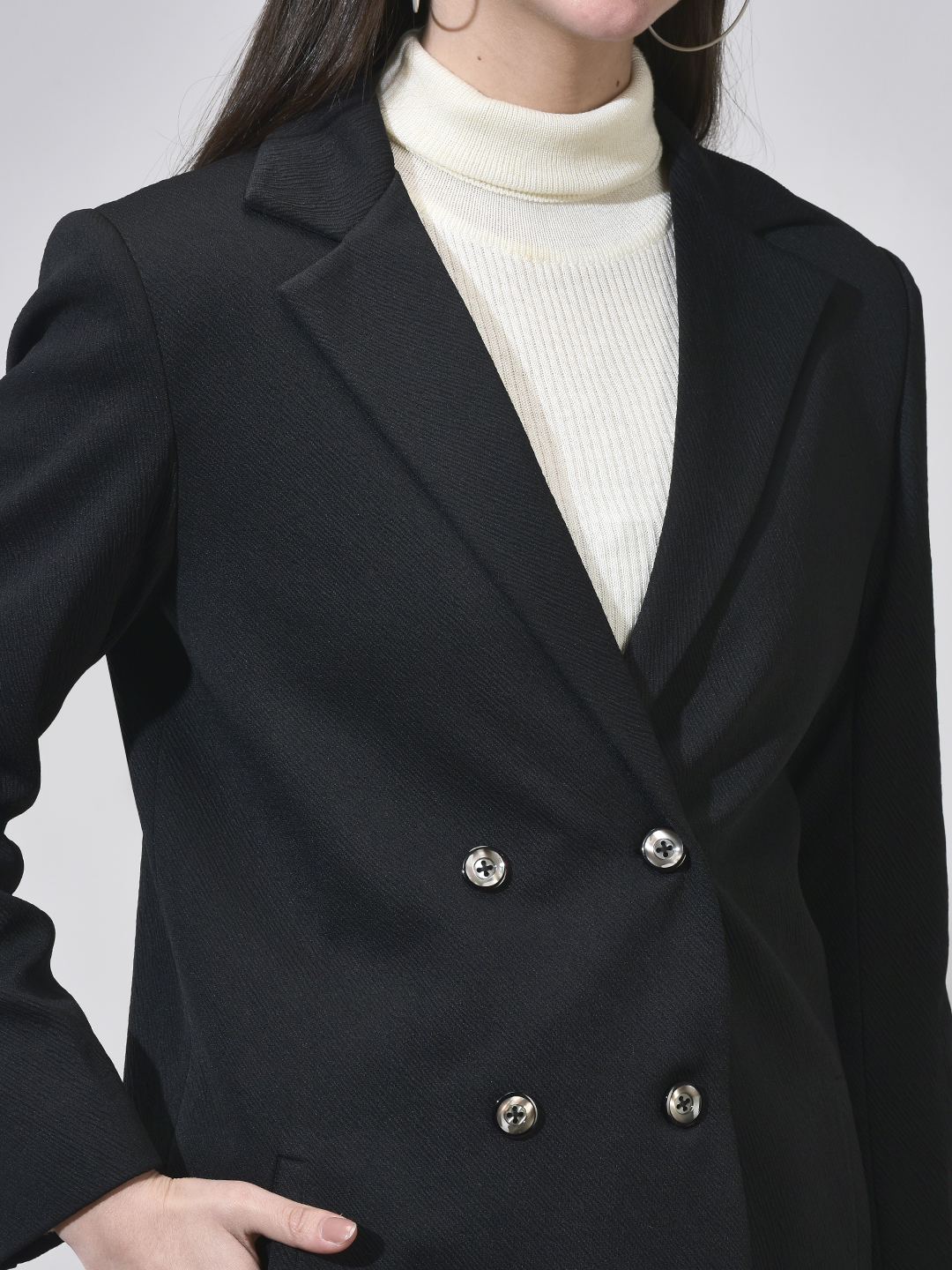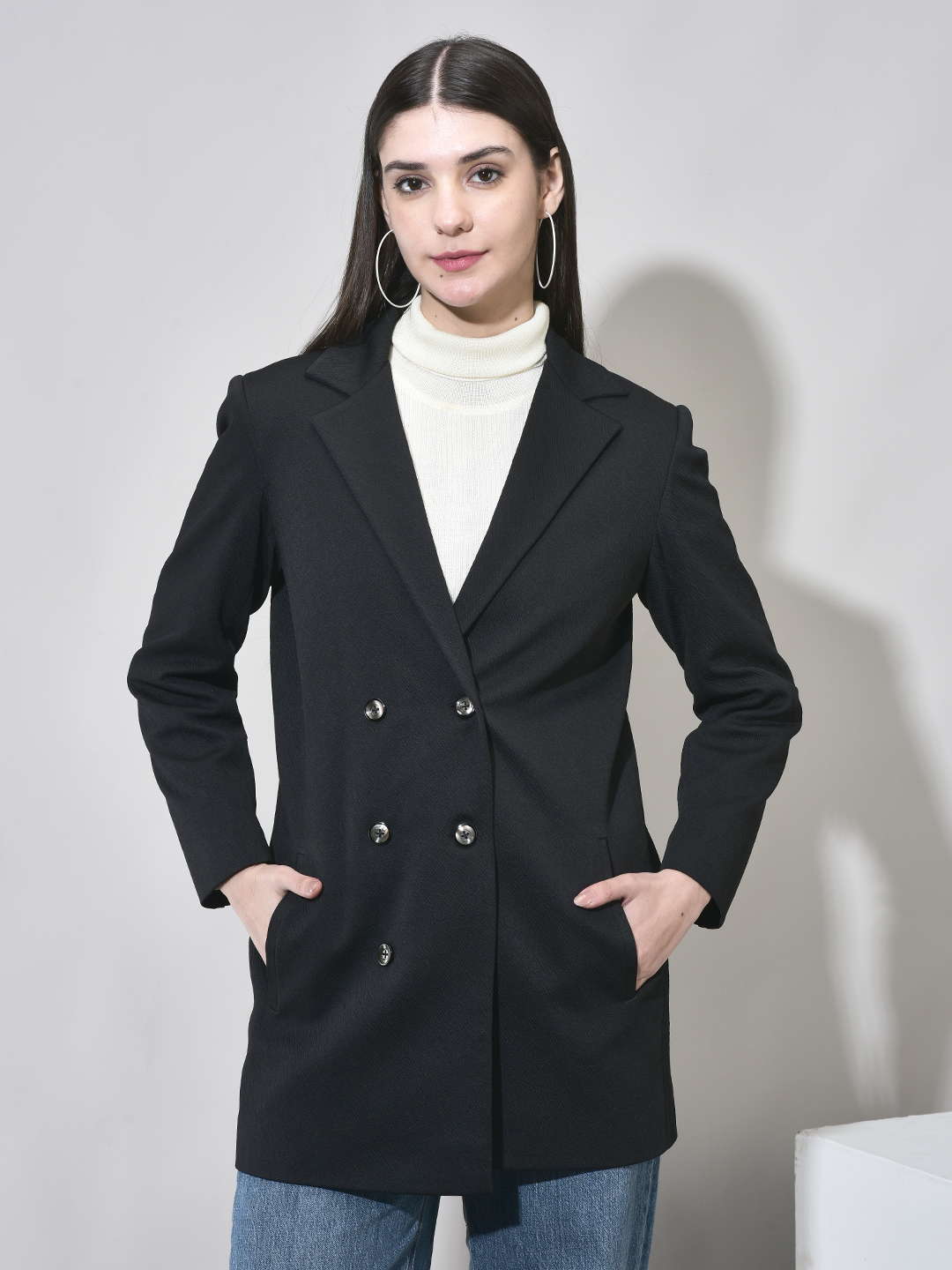 Elevate your wardrobe with The Iconic BlackBlazer. Designed for both warmth and effortless style, this blazer features a classic double-breasted silhouette that exudes timeless sophistication.