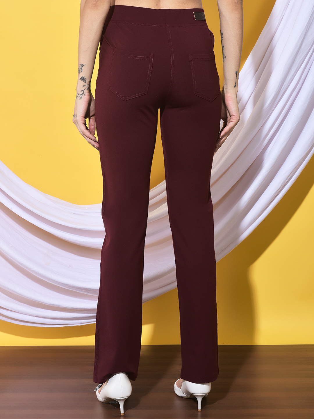 These PR STP trousers are engineered for maximum comfort and movement, crafted from a premium Poly-Spandex blend. This fabric choice provides the perfect balance of a sharp, high-rise, straight-leg silhouette with the unrestricted flexibility you need for all-day wear.