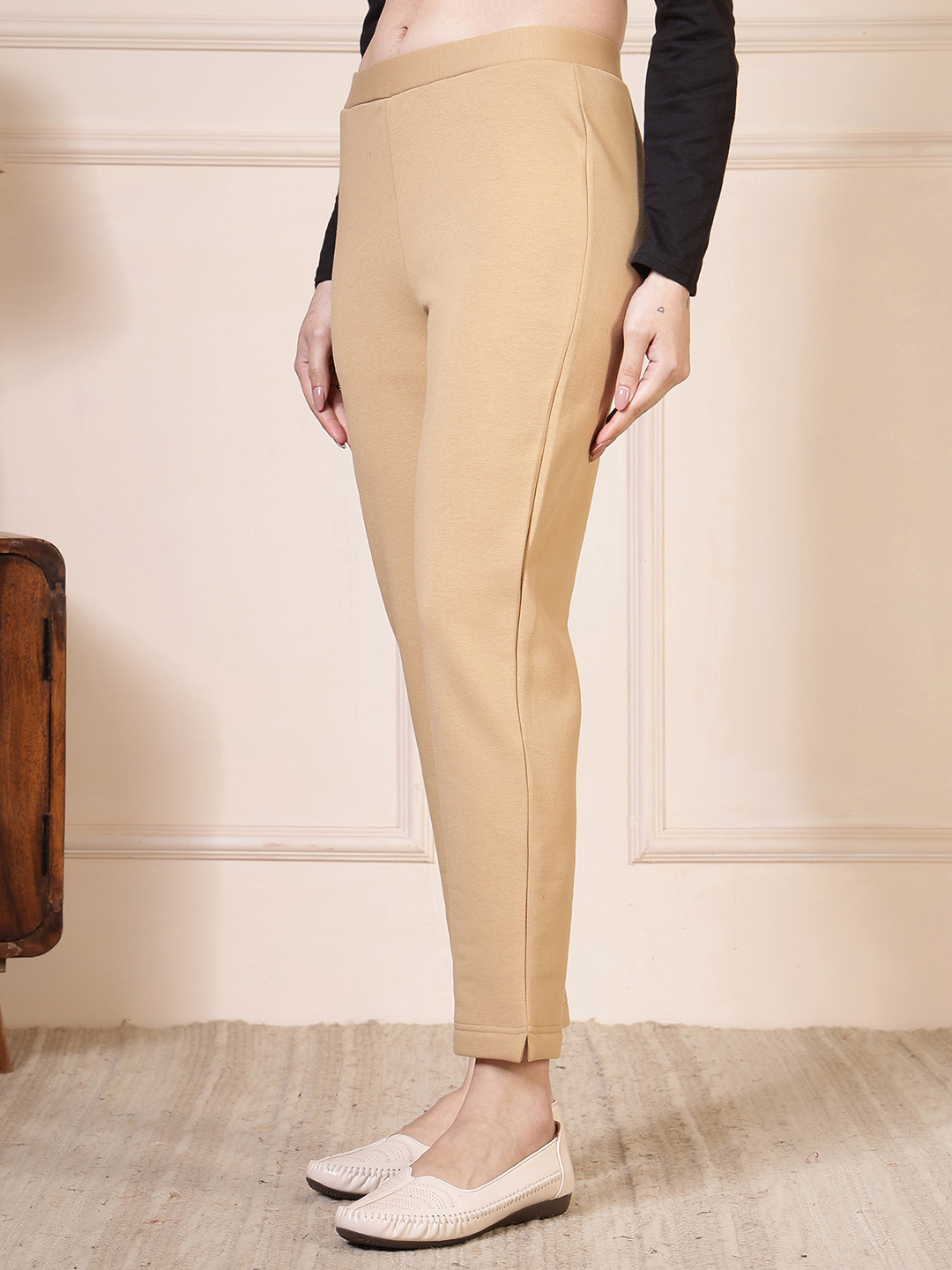 Stay effortlessly chic and exceptionally warm with the FLC Stylo Pants. Designed for the modern woman who refuses to sacrifice style for comfort, these pants are engineered with advanced Heat-Tech technology to keep you cozy during the coldest months. The secret lies in the luxurious cotton-poly-spandex blend, featuring a specialized soft fleece brushing on the interior. This \"fuzzy\" lining traps body heat while remaining breathable, providing a soft-to-the-touch feel against your skin all day long.