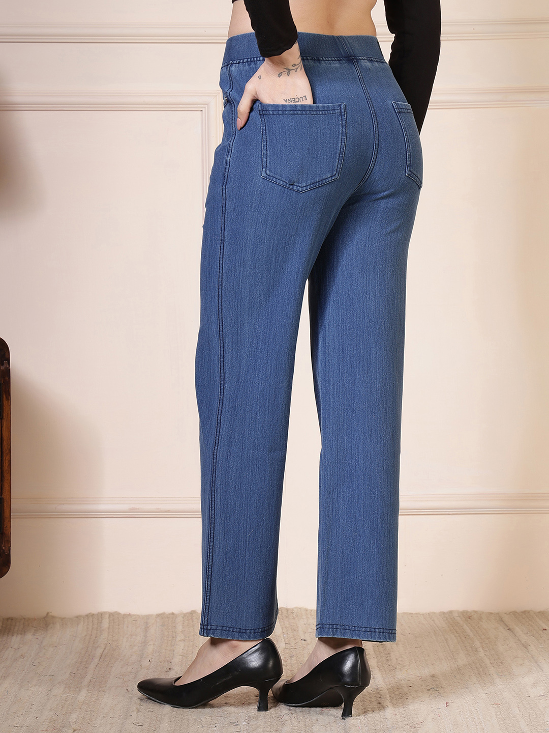 High-Rise Wide-Leg Denim Trousers – Arctic Blue Product Overview Refresh your denim collection with a breeze of modern minimalism. Our High-Rise Wide-Leg Denim Trousers in Arctic Blue offer a light, airy aesthetic without sacrificing the structured elegance of a tailored trouser. Designed for the trend-forward woman, these trousers feature a soft, sun-washed tint that brings a relaxed, high-end feel to your daily wardrobe. The light blue wash highlights the drape of the wide-leg silhouette, making these the perfect "elevated casual" piece for year-round styling