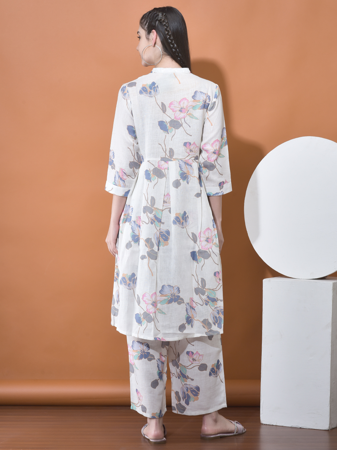 Experience the perfect harmony of heritage and contemporary style with our Cotton-Linen Floral Co-ord Set. This ensemble is meticulously crafted for the woman who seeks a polished yet relaxed silhouette for the warmer months. Featuring a soft ivory base adorned with artistic, multi-hued botanical illustrations in shades of dusty rose, slate blue, and amber, this set is a true summer essential.