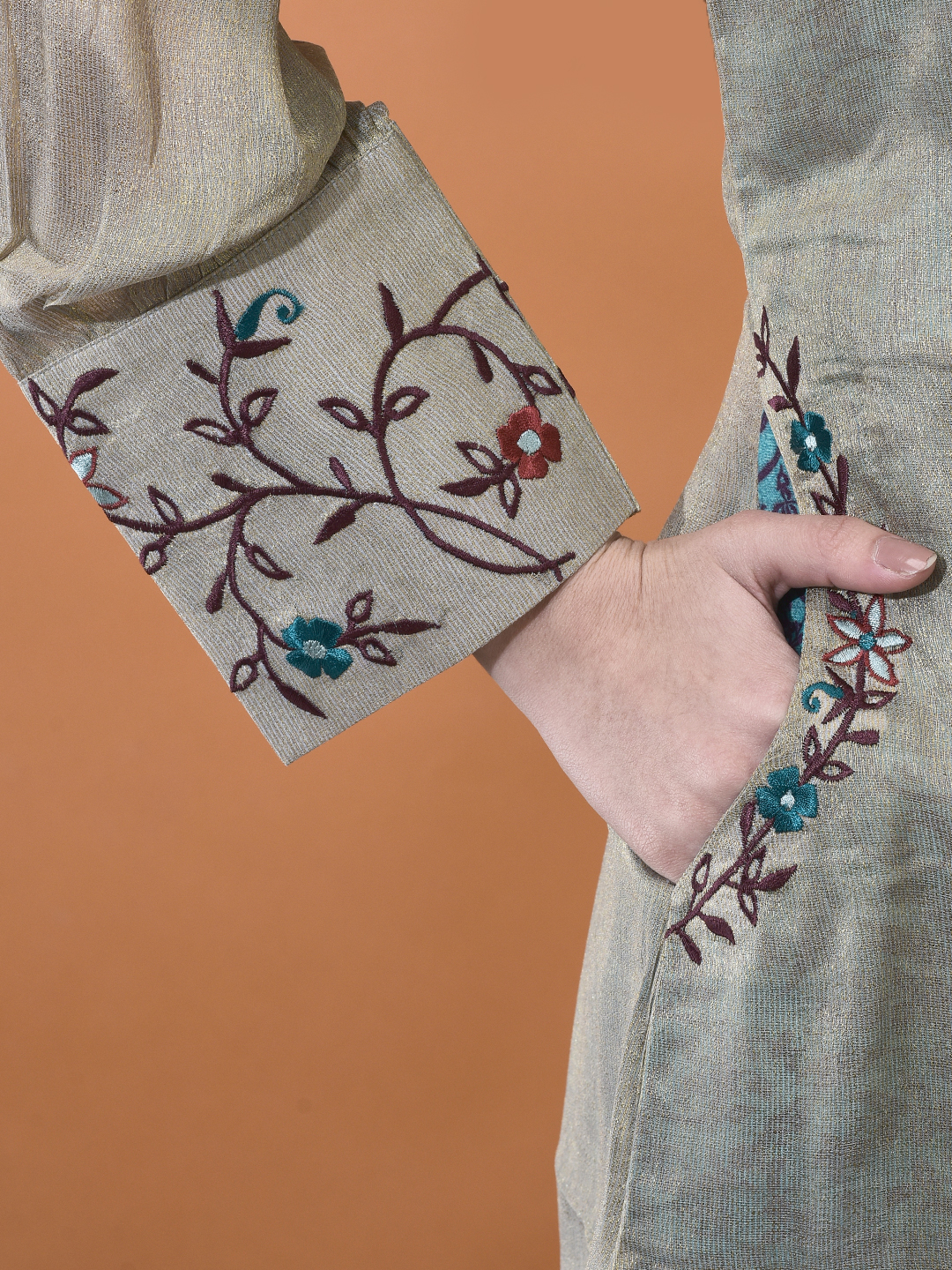 | Work Type | Contrast Floral Embroidery & Detailed Block Print |