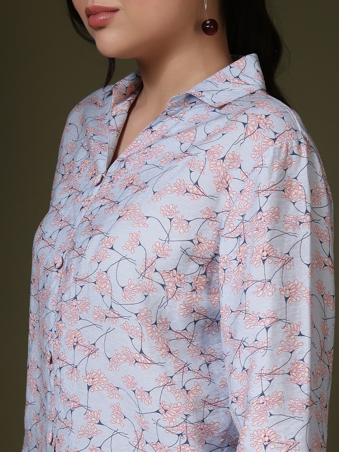 • Front Closure: Features a clean button-down front with color-coordinated buttons that blend seamlessly into the intricate patterns.