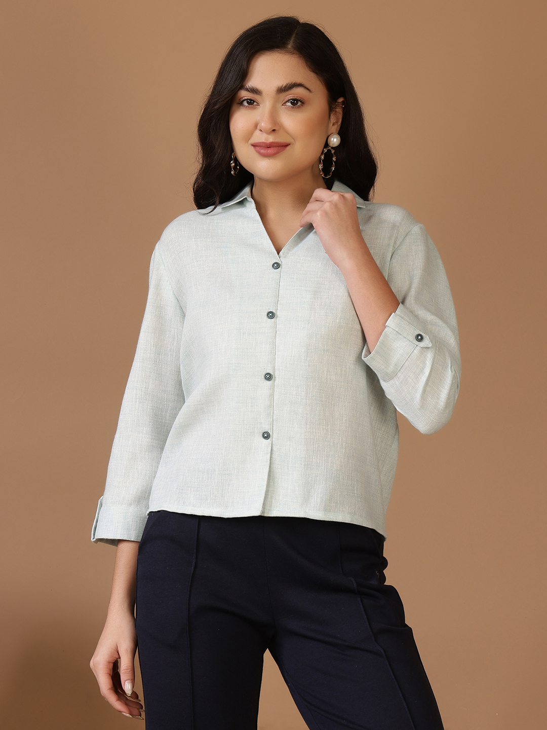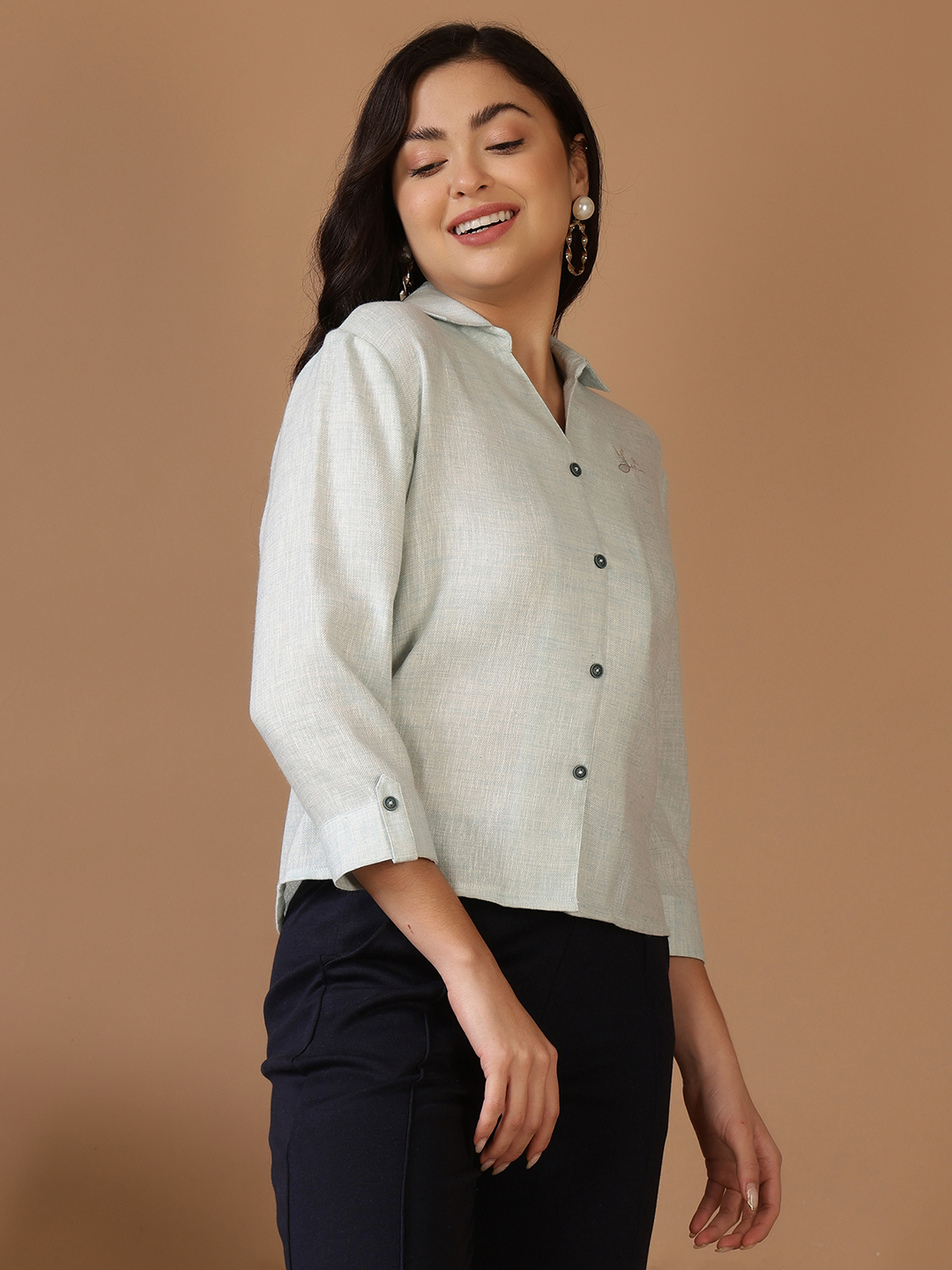 This shirt is the personification of "effortless chic." Crafted from high-grade, breathable cotton, it’s designed to keep you cool while looking impeccably polished. Whether you’re heading to a brunch date or a casual weekend getaway, this piece brings a soft, tactile luxury to your everyday wardrobe. Elevate your casual rotation with our 100% Premium Cotton Crop Shirt. Featuring a subtle textured weave and a refined button-down front, this shirt strikes the perfect balance between structured tailoring and relaxed comfort.