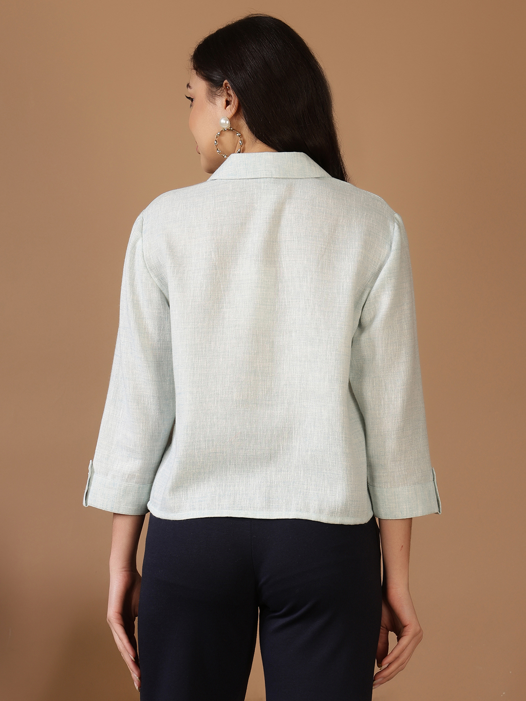 • The Length:  A modern crop that hits perfectly at the high-waist line—ideal for pairing with high-rise denim, linen trousers, or skirts.
