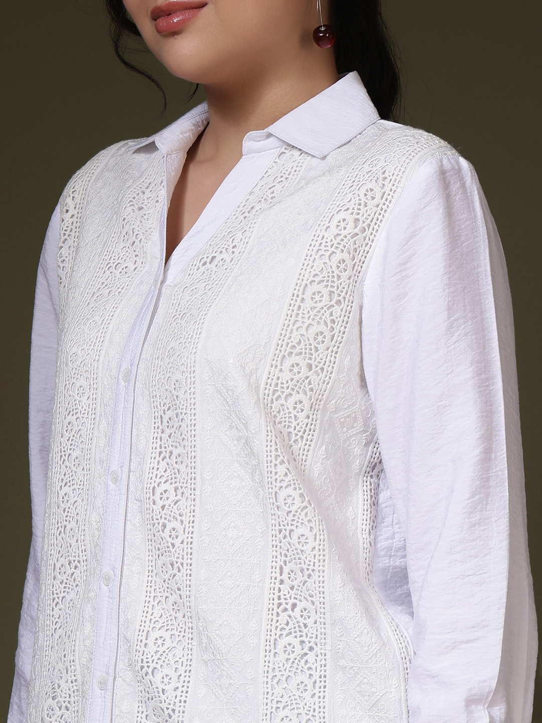 Redefine your wardrobe with a piece that celebrates detail. This shirt features extensive hand-worked embroidery and the latest Schiffli cutwork lace panels, creating a stunning play of light and texture. The premium cotton fabric ensures a luxurious, soft-to-the-touch feel that remains crisp and breathable all day long.