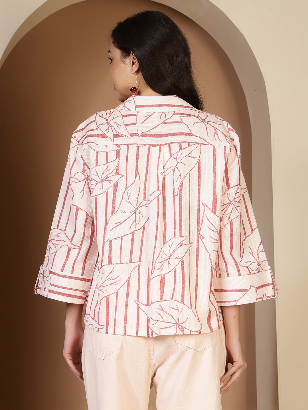 Infuse your wardrobe with natural elegance. This shirt features a striking hand-drawn botanical print overlaid on a classic stripe pattern, all on a Premium Cotton Slub Viscose base. The fabric’s characteristic "slub" texture gives it an organic, artisanal look, while the viscose blend ensures it stays soft and fluid against the skin.