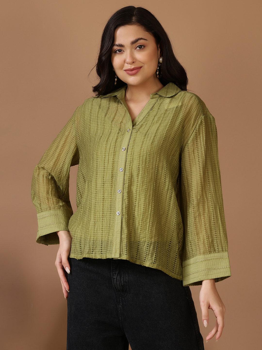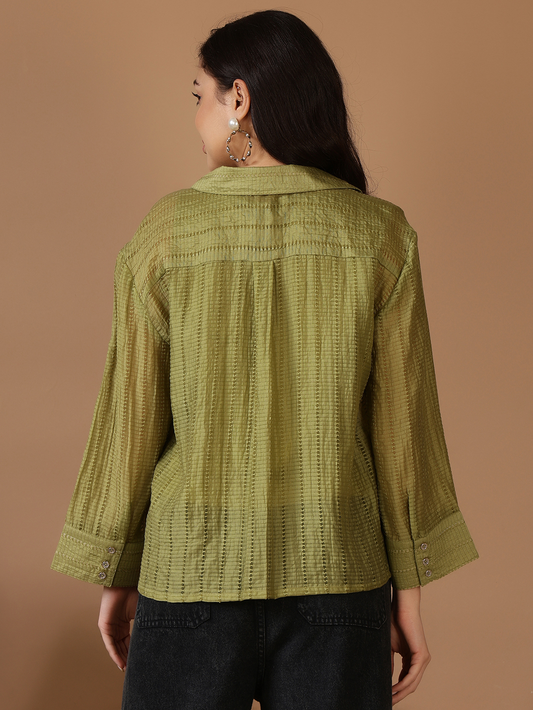 Home Western Wear Linear Glow Oversized Shirt Green