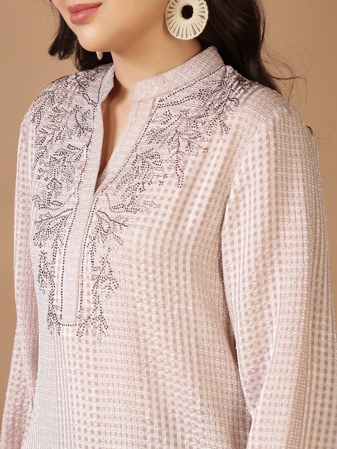 | Workmanship | Intricate hand-done bead and sequin embroidery on the yoke. |