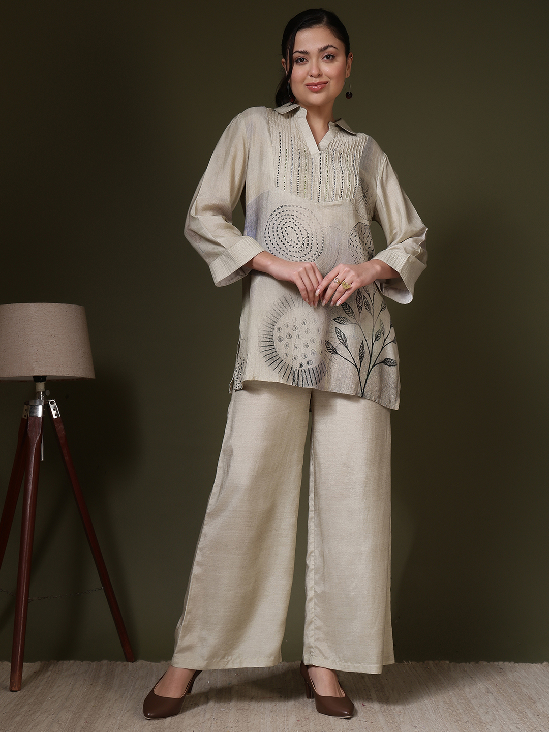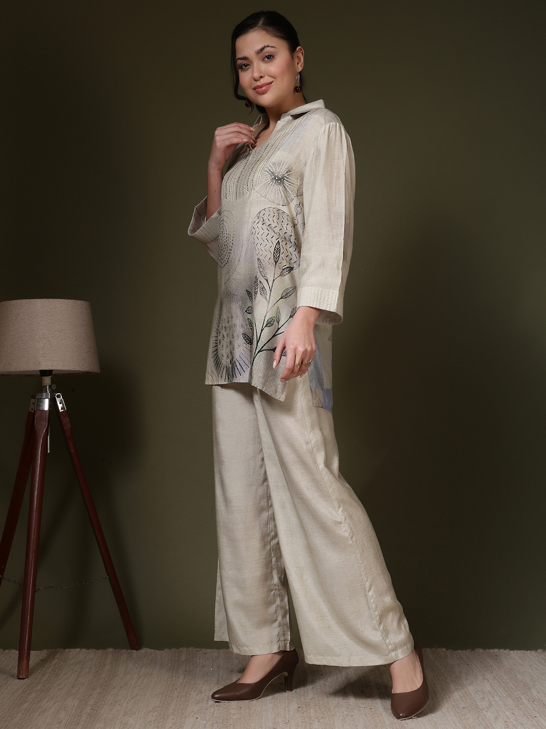 Elevate your daily repertoire with our Printed Muslin Co-ord Set, designed for the woman who values effortless elegance. Crafted from premium, breathable muslin fabric, this duo features a fluid tunic top and matching wide-leg trousers that offer a seamless blend of comfort and style.