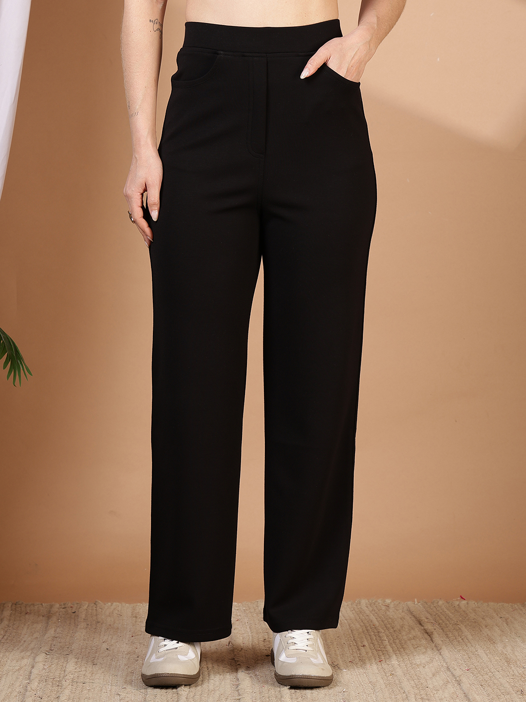 • Effortless Wide-Leg Fit: A modern, straight-to-wide leg silhouette that creates a long, lean line. The fabric’s inherent drape allows the trousers to flow elegantly with every step without feeling heavy.