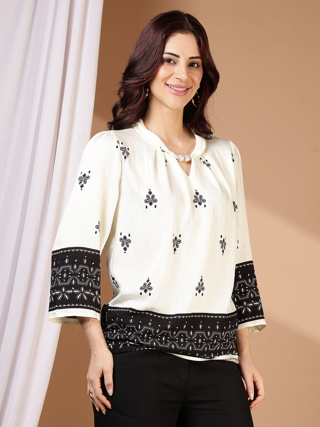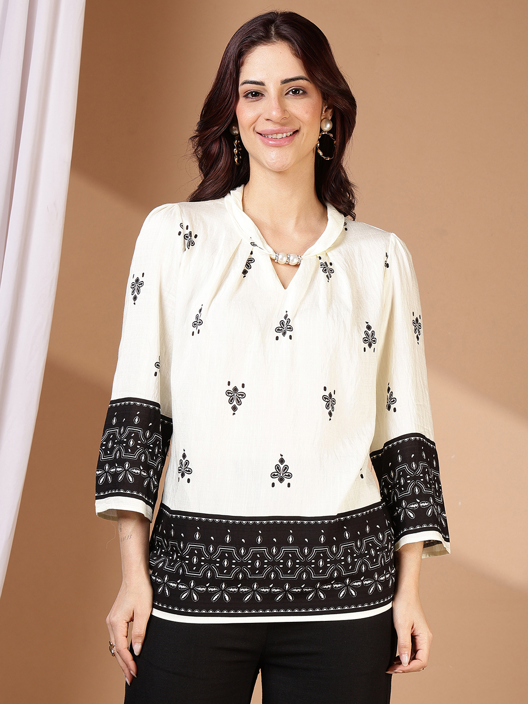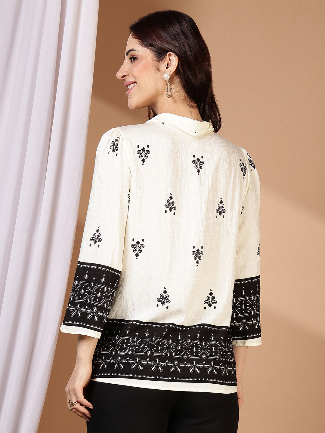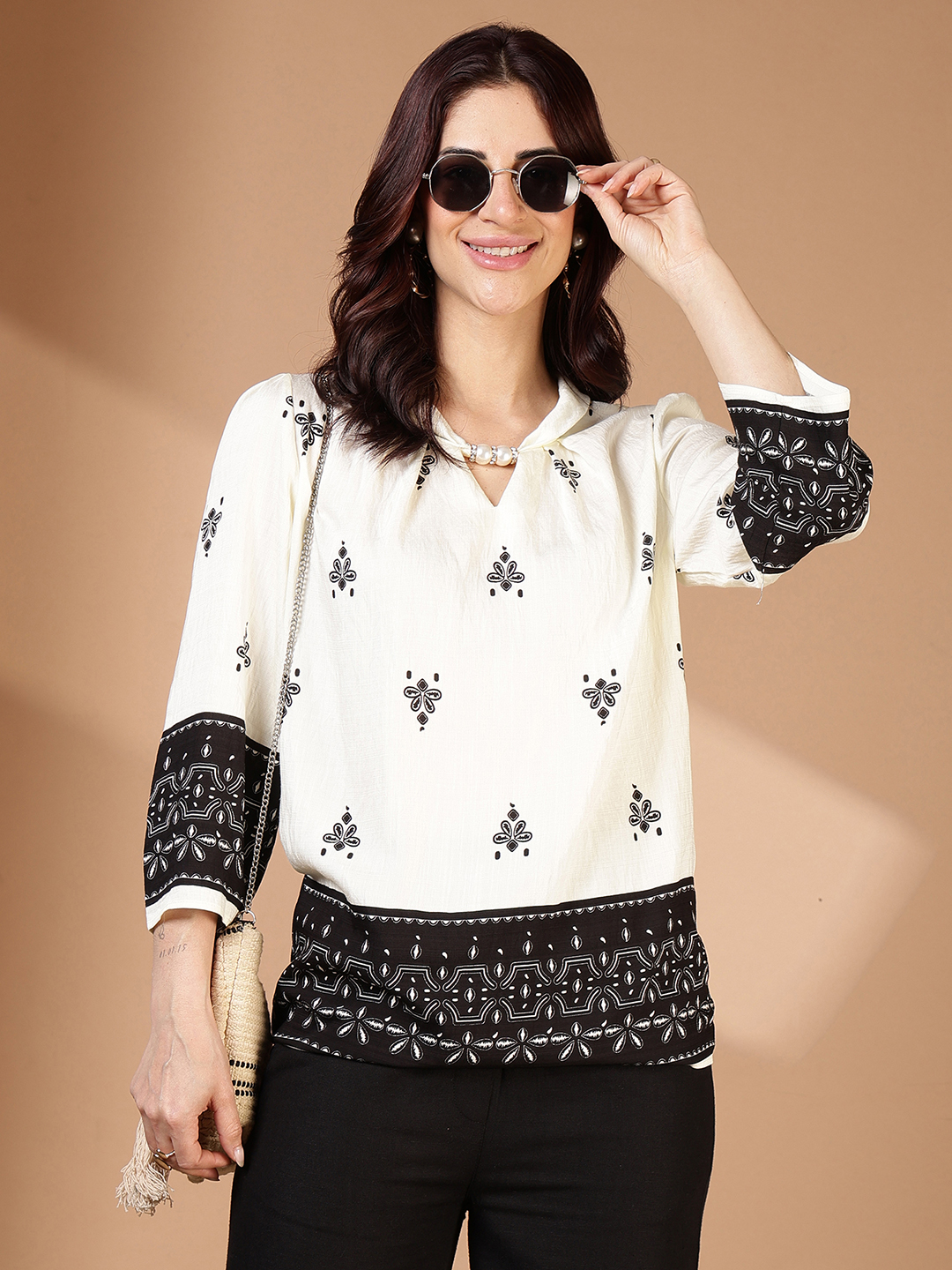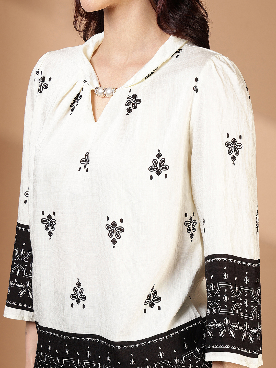 Step into effortless summer elegance with our latest printed tunic, a perfect blend of artisanal charm and modern tailoring. Designed for the woman who appreciates the finer details, this top features a sophisticated Indigo-Navy palette with delicate white motifs that evoke a timeless, breezy aesthetic.