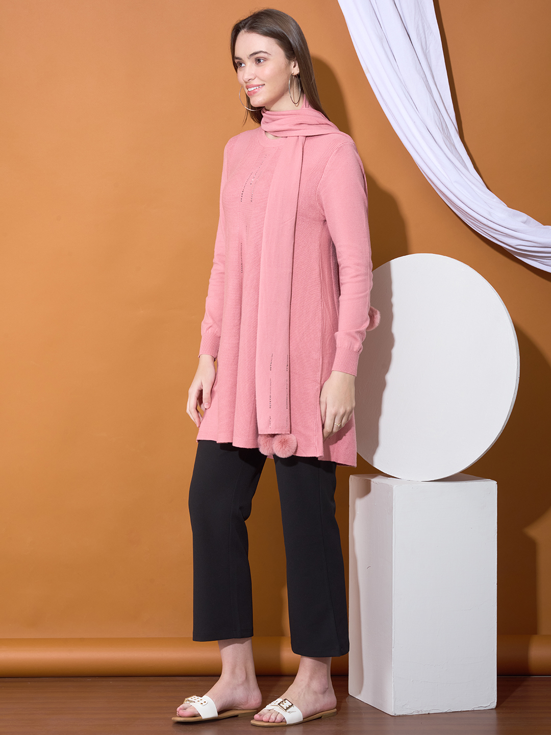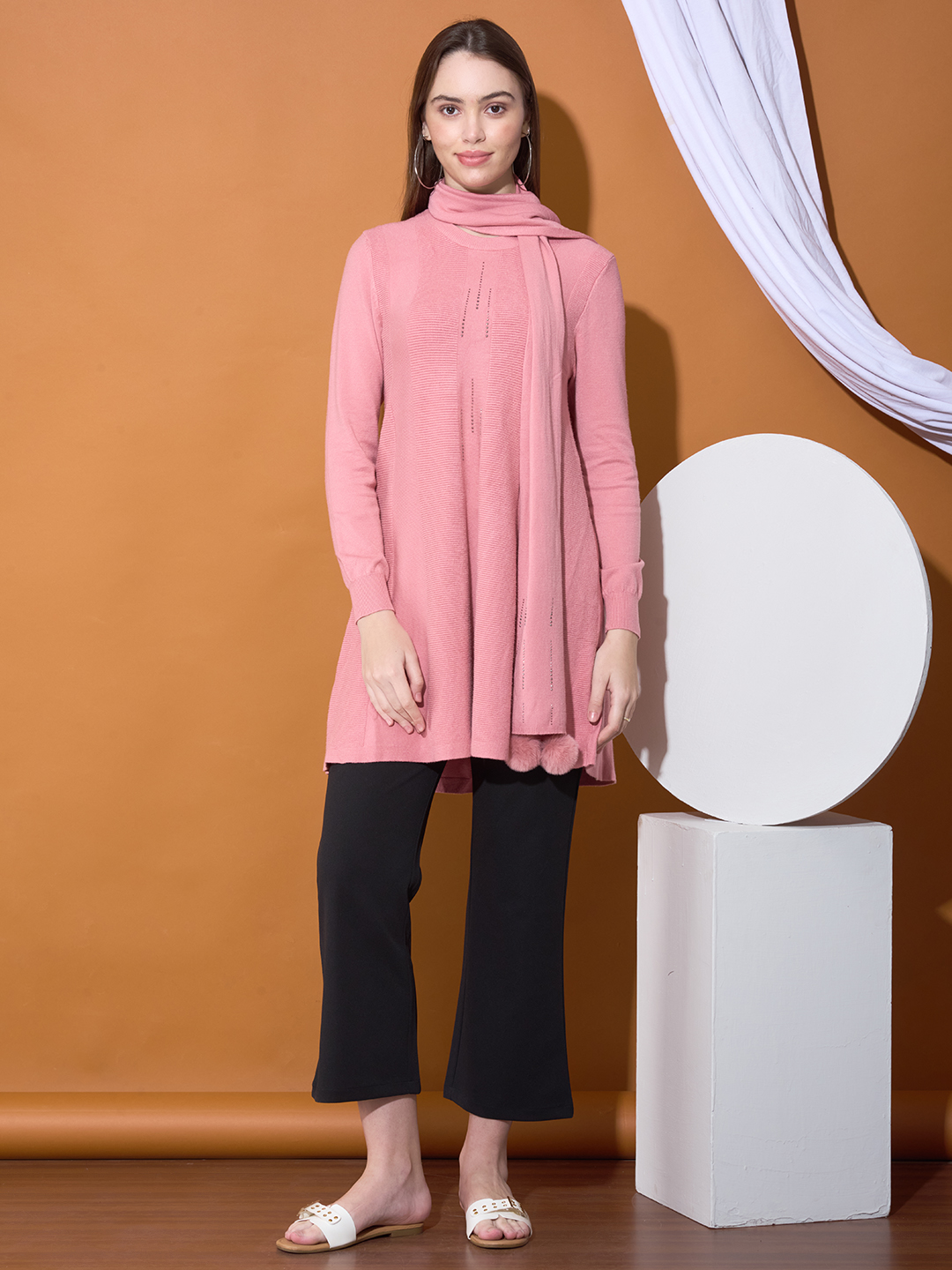Embrace modesty and comfort this winter with The Cozy Knit Stole Set. This ensemble features a long-line tunic-style top, matching trousers, and an accompanying coordinating stole/scarf, ensuring elegant, full coverage and warmth.