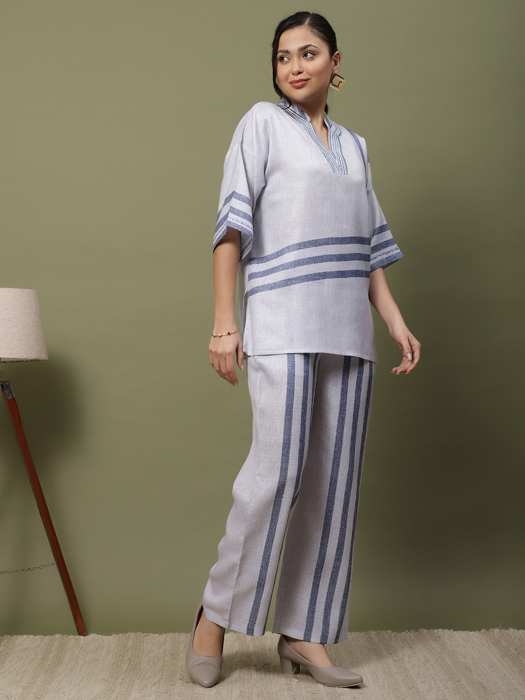 Embrace understated glamour with our Dusty Rose Linen Set in Grey Designed for the modern woman who values both comfort and high-fashion aesthetics, this set is crafted from a premium linen blend. The fabric offers the classic, rich texture of linen with a smoother finish and better drape, making it an ideal choice for sophisticated daywear or elevated travel looks.