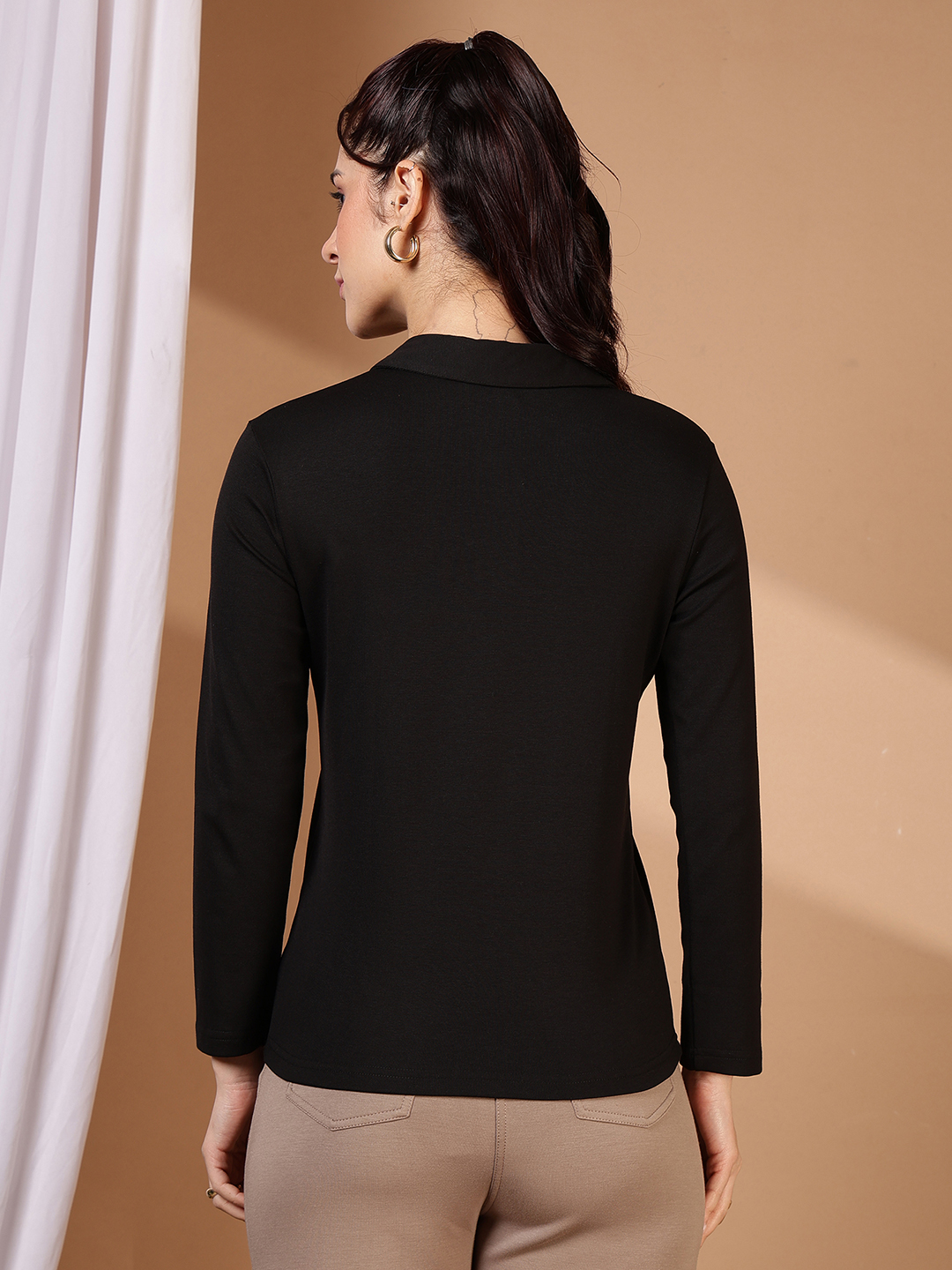 • Sleeves: Full-Length Slim Sleeves. Perfect for transitional weather or air-conditioned environments, offering a streamlined look from shoulder to wrist.