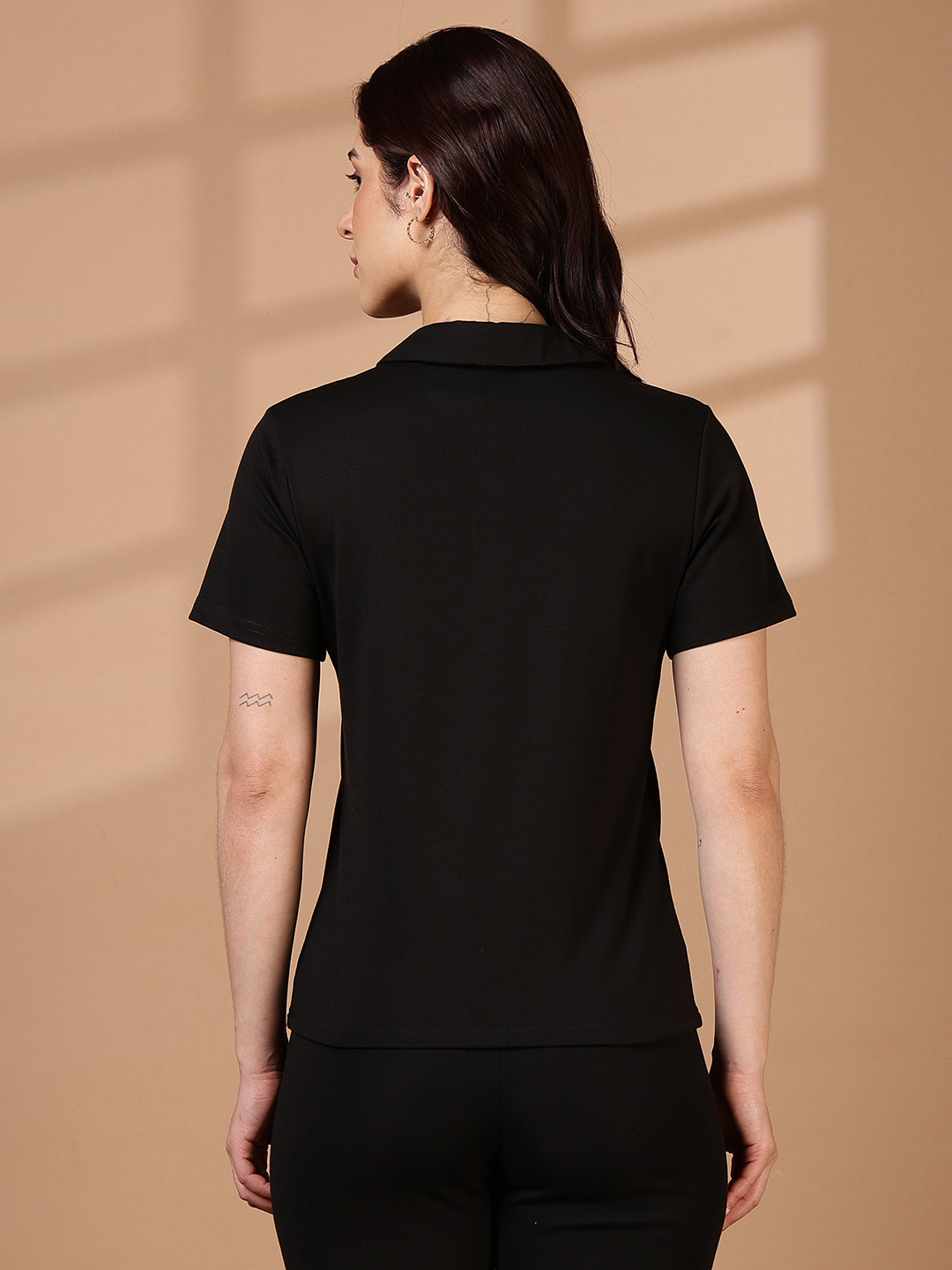 For a high-end, curated aesthetic, wear this polo as a coordinated set by pairing it with our matching Bottomwear-RB WL in Black Color.