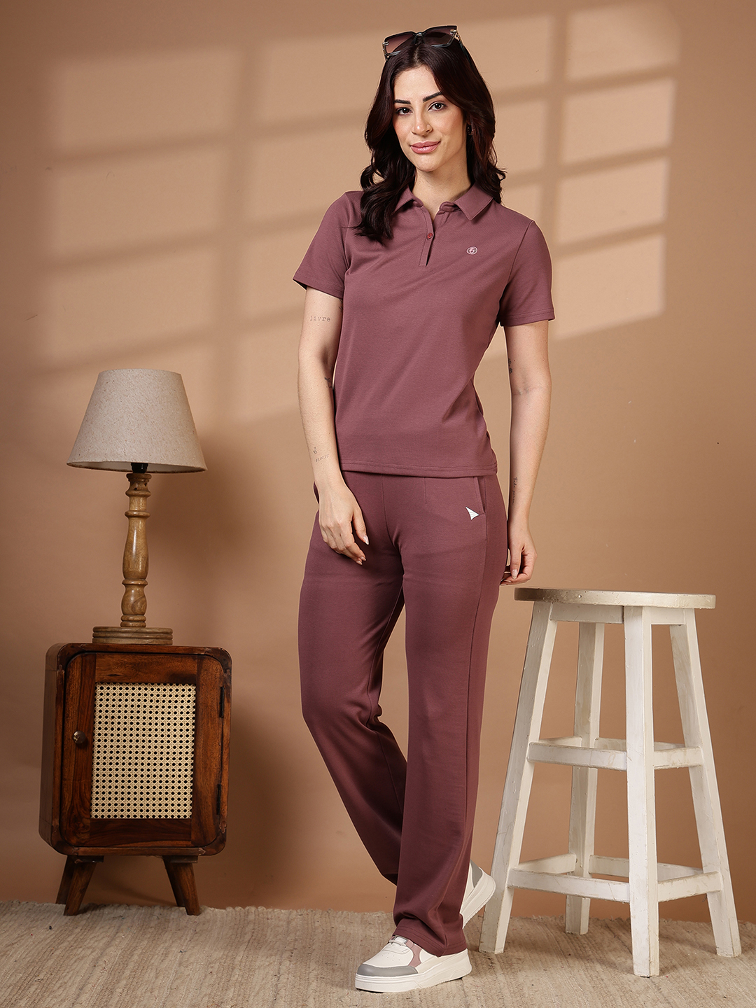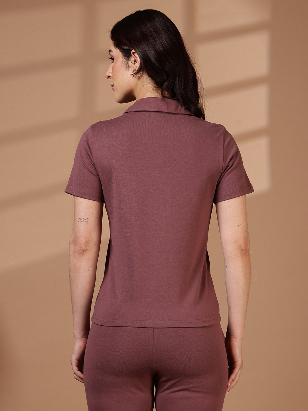 For a high-end, curated aesthetic, wear this polo as a coordinated set by pairing it with our matching Bottomwear-RB WL in Onion Color.