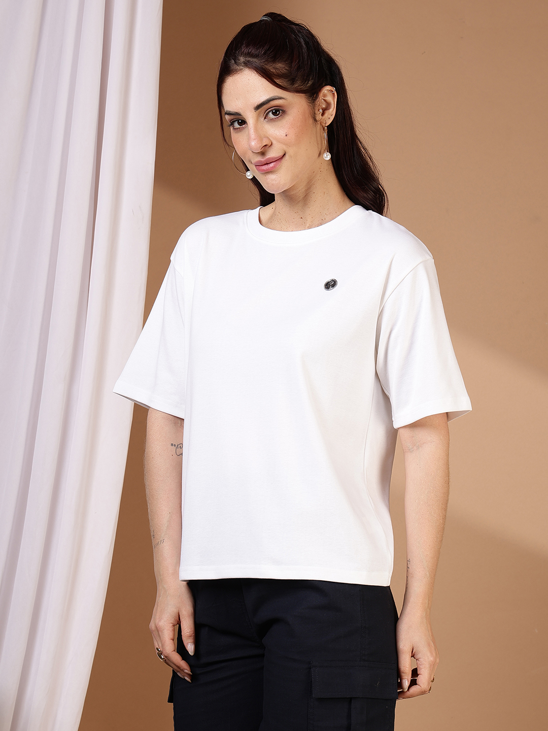 • The Detail: Features a distinctive metallic emblem on the chest, adding a refined, premium touch to the minimalist design.