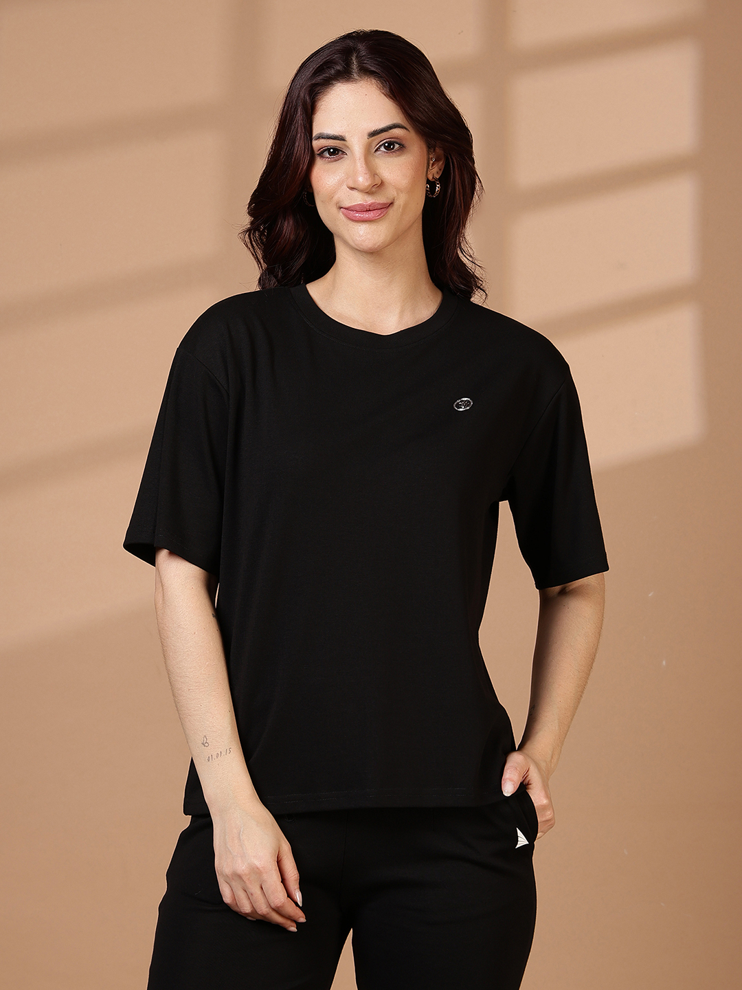 This tee is the ultimate fusion of structured sophistication and effortless ease. Crafted from a high-quality Cotton-Ribbed Poly blend, it features a unique micro-texture that elevates it far beyond your basic cotton top. The fabric is specifically engineered for summer, offering a cool-to-the-touch feel and excellent drape that resists wrinkling throughout the day.