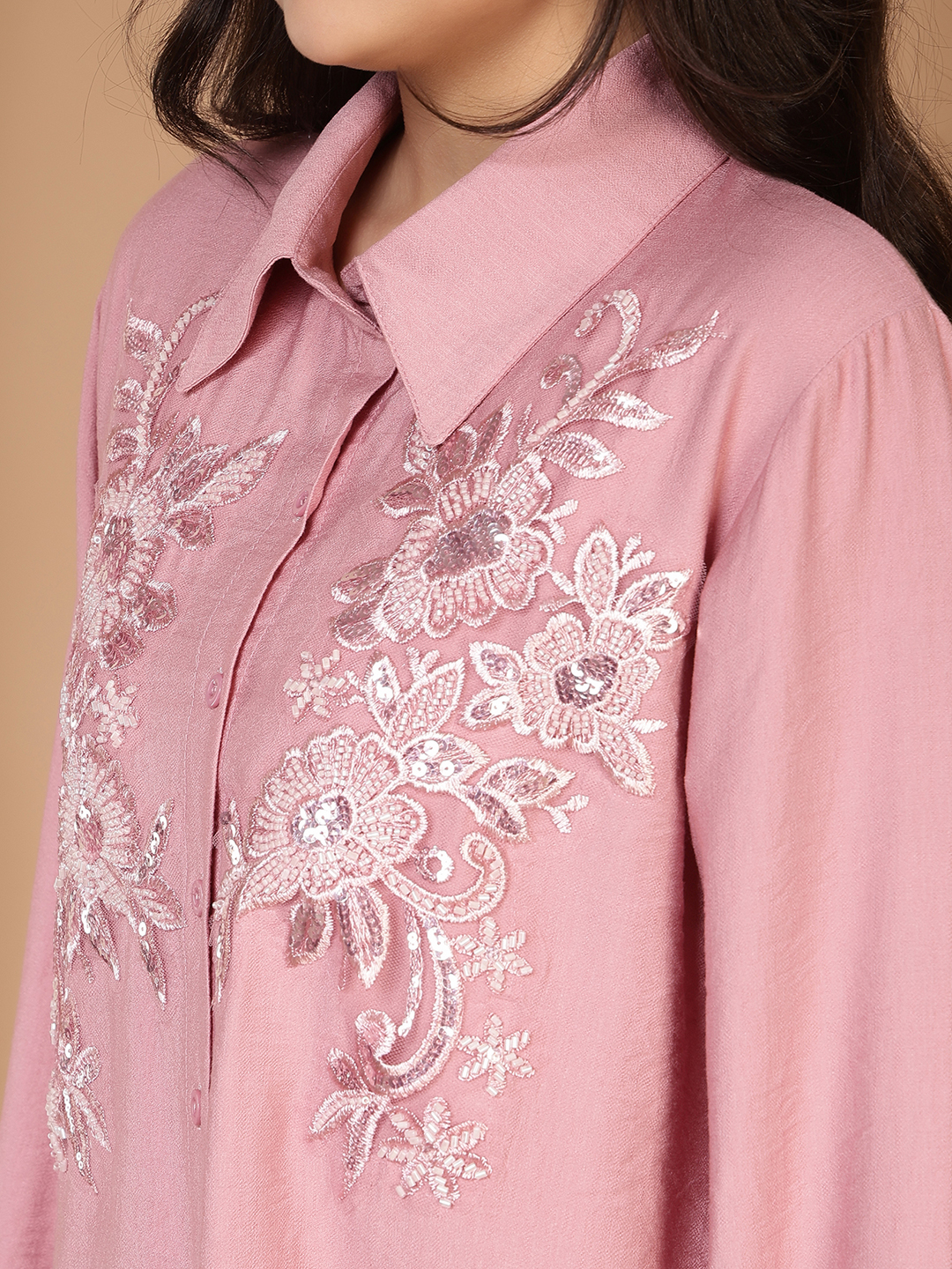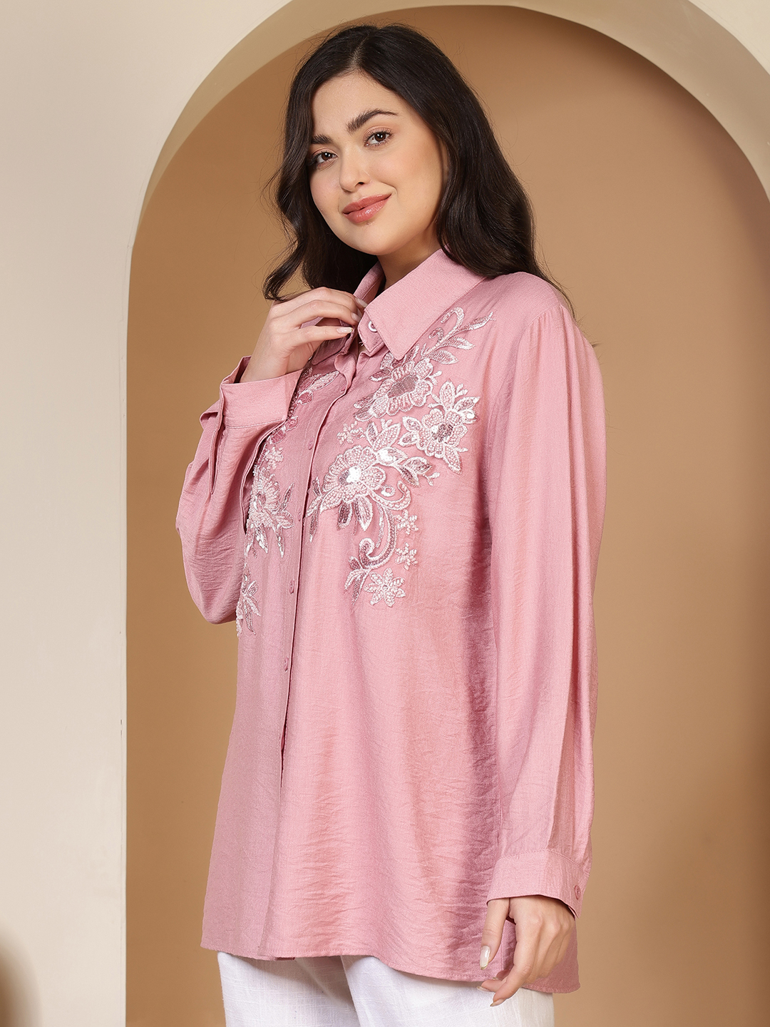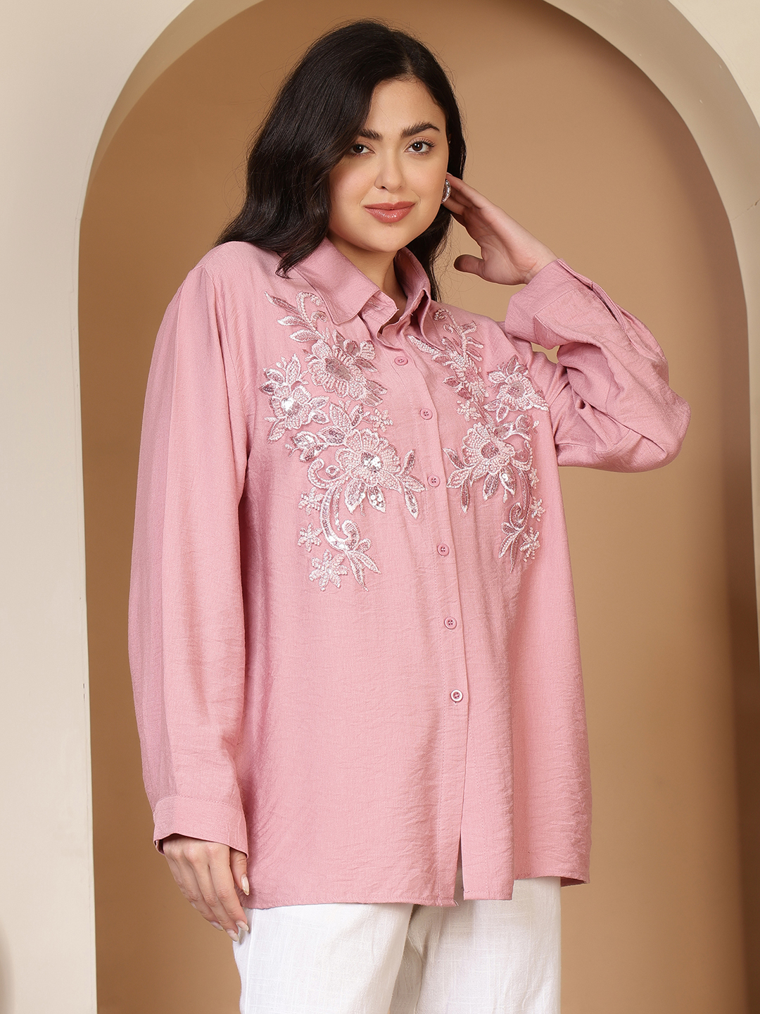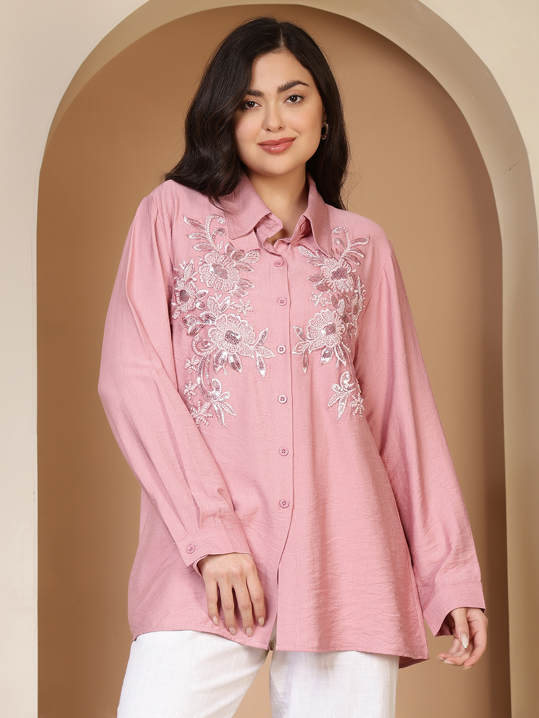 Capture the essence of a summer breeze with our Floral Cascade Chiffon Top. This top is meticulously crafted from ultra-lightweight printed chiffon, offering a sheer, ethereal quality that keeps you cool even on the warmest days. The design features a sophisticated interplay of vertical stripes and romantic floral sprigs in a palette of dusty pink and cream.