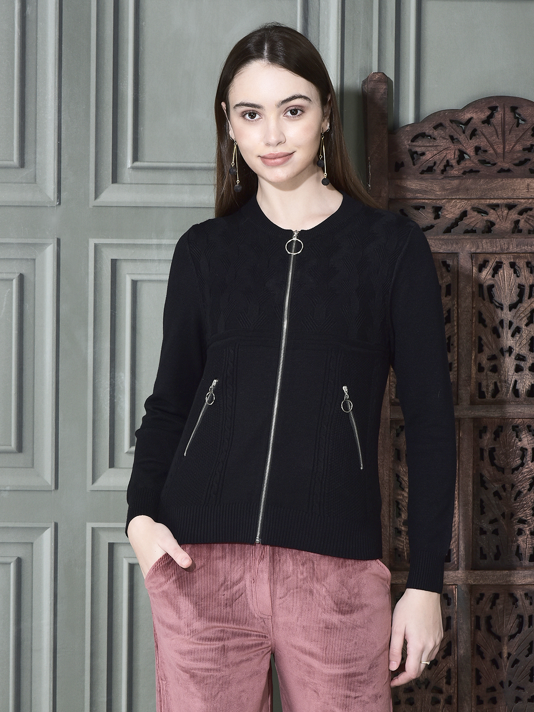 Layer up in style this winter with The Zipper Detail Knit Jacket, a piece that merges cozy warmth with contemporary design.