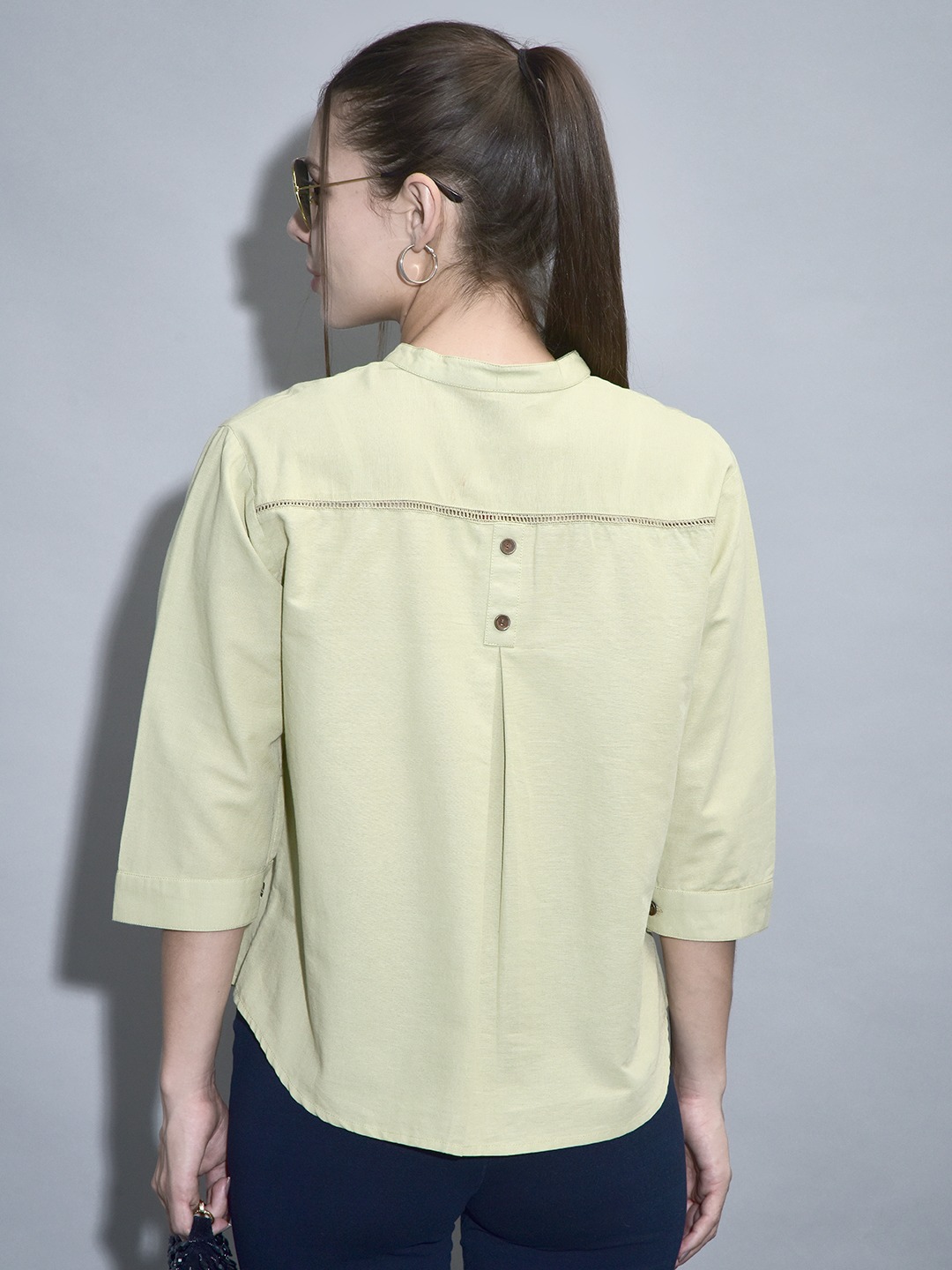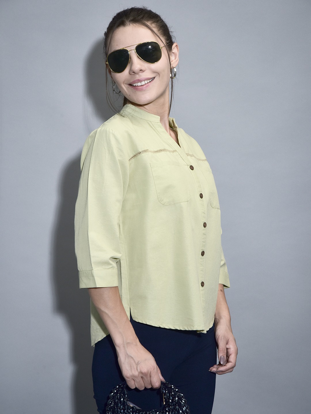 Fabric- :: jute cotton Length- :: cropped Detailing- :: lace work on front and back