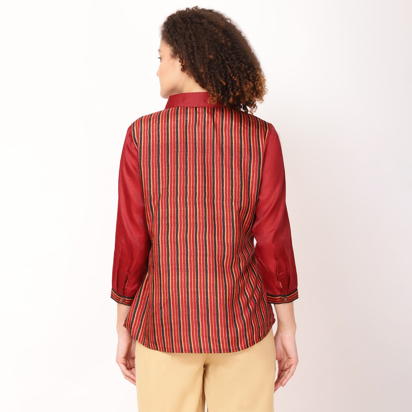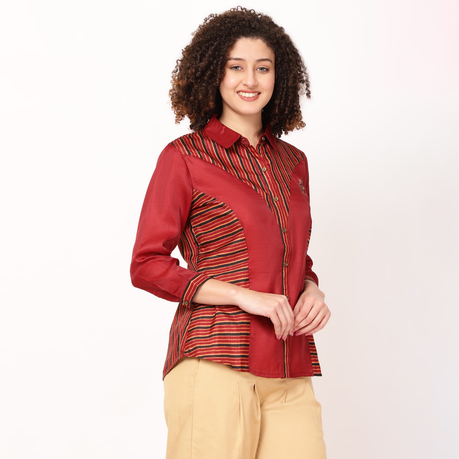 fabric- :: poly viscose Length- :: regular Detailing- :: Embellished swarovski work on collar and one side of placket.