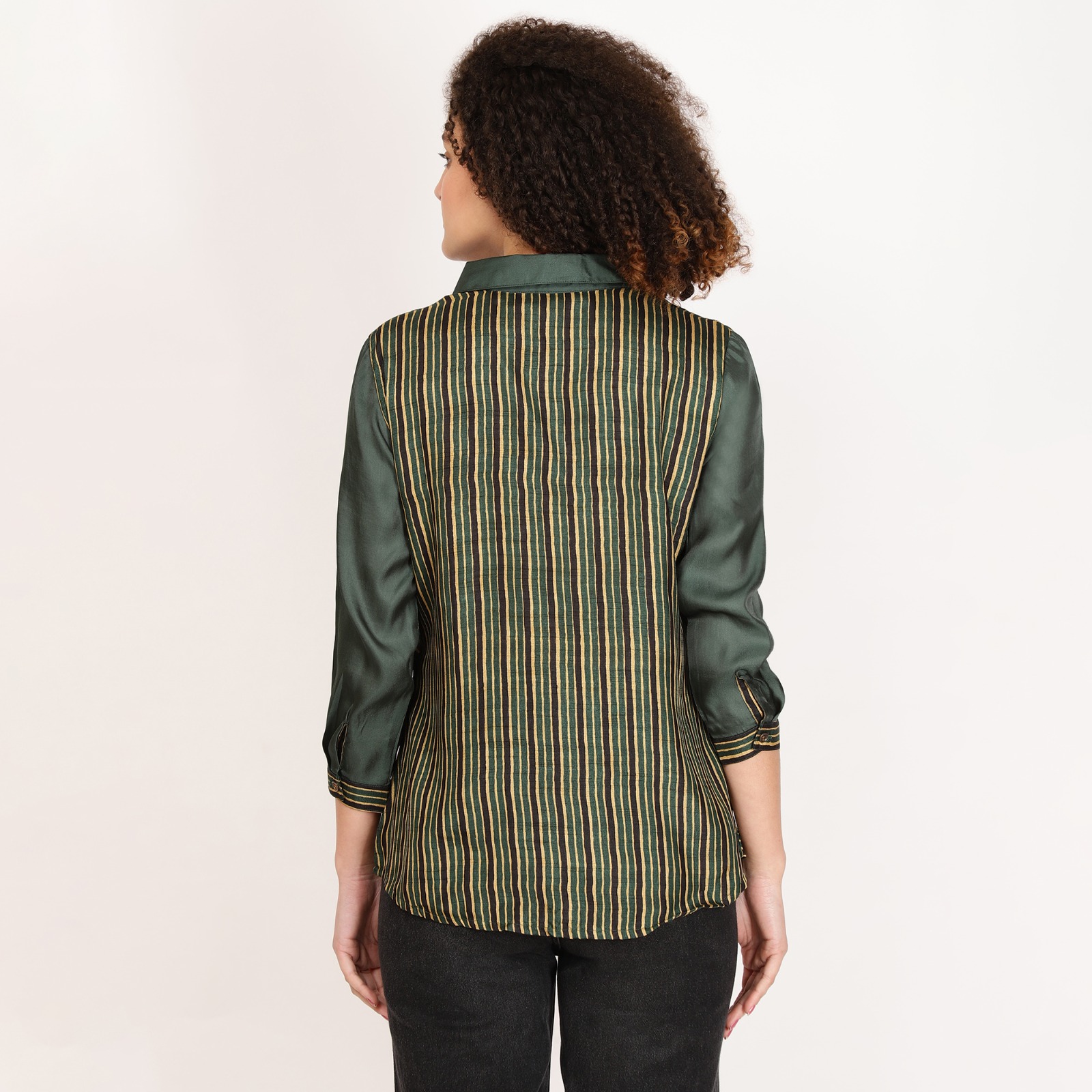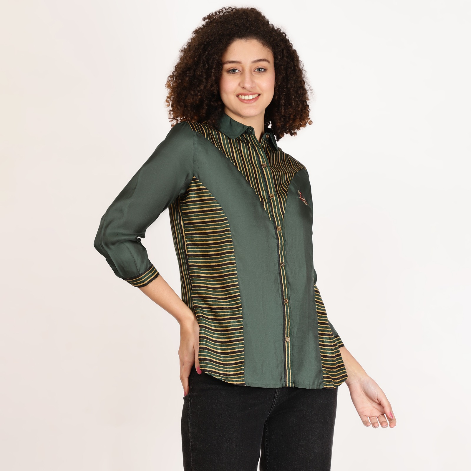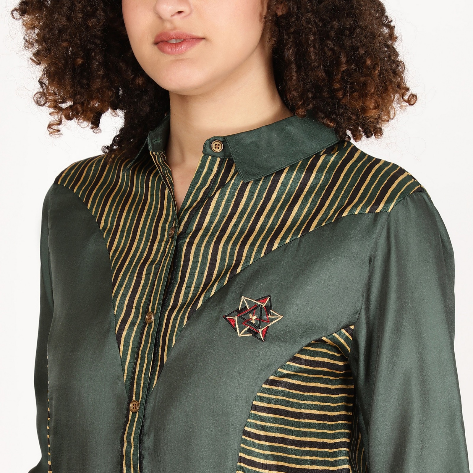 fabric- :: poly viscose Length- :: regular Detailing- :: Embellished swarovski work on collar and one side of placket.