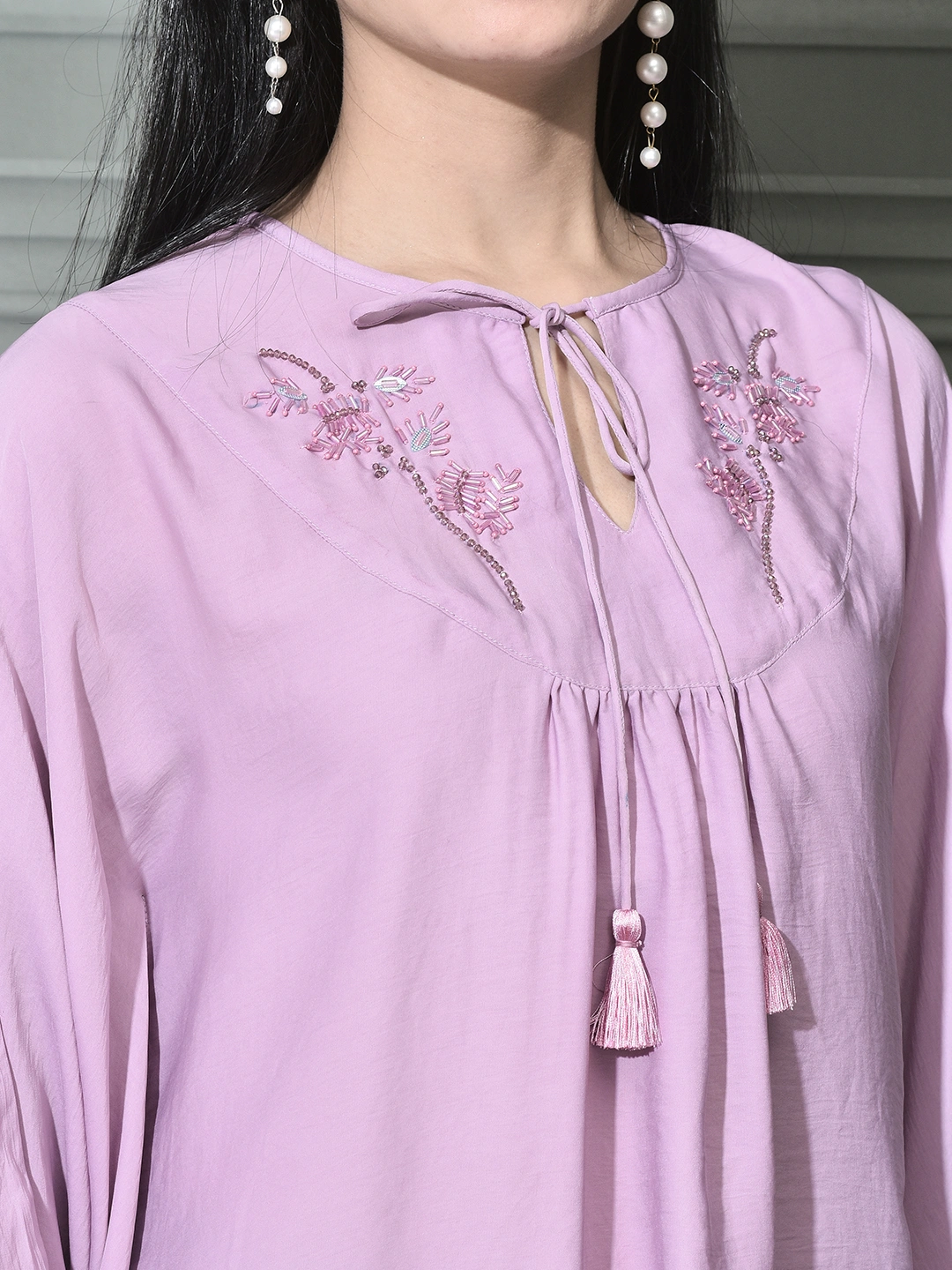 FABRIC :: Satin Poly DETAILINGS :: Embellished Handwork with tassels